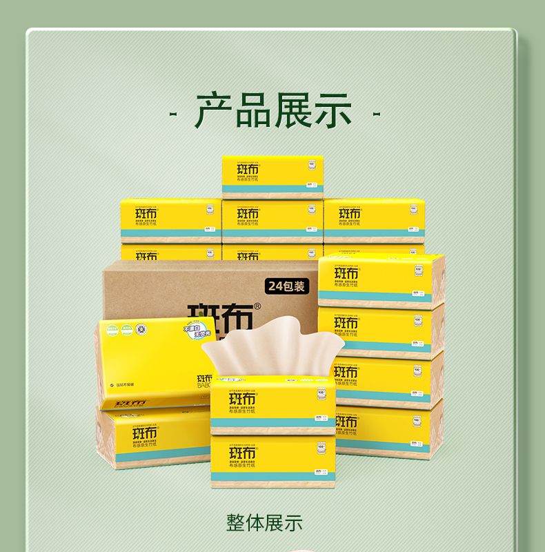 商品名称:斑布BASE系列软抽135mm100抽*24包DBCR100E24