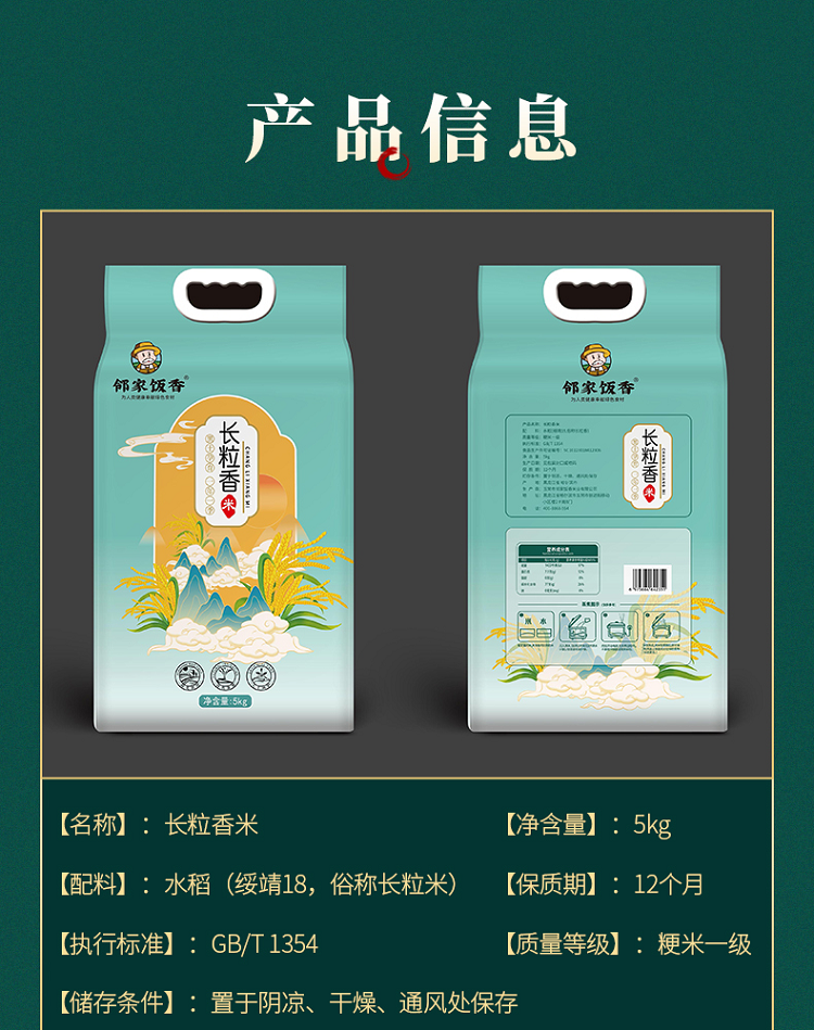 商品名称:邻家饭香东北大米长粒香米5kg/袋黑土地种植一年一季LJFX86-C