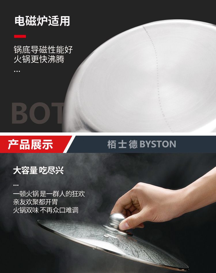 商品名称:栢士德BYSTON合家欢火锅BST-092易清洗 电磁炉燃气煤气灶明火通用