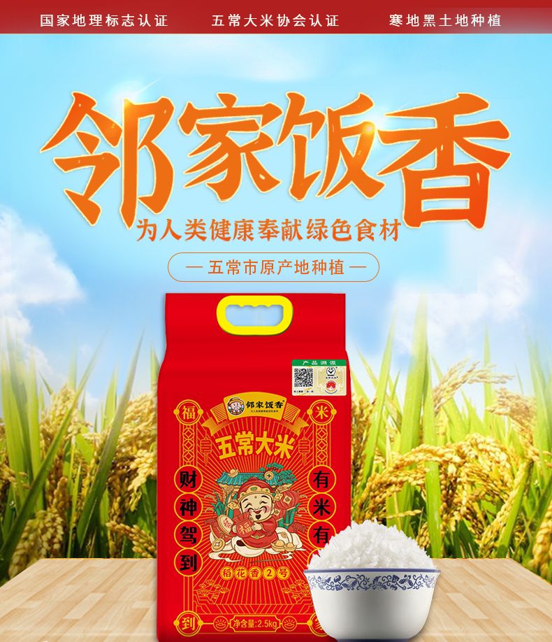 商品名称:邻家饭香五常大米稻花香2号2.5kg/袋地标产品黑土地种植原生态种植二级产区LJFX76