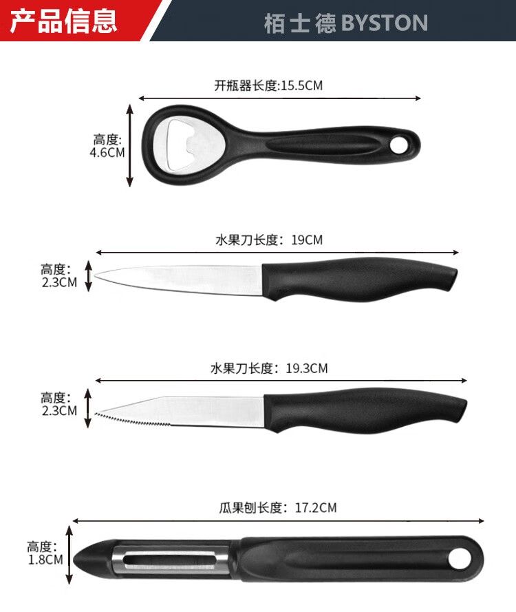 栢士德不锈钢小工具套装 3.5寸果皮刀*2、果蔬刨、开瓶器、圆筒BST-089
