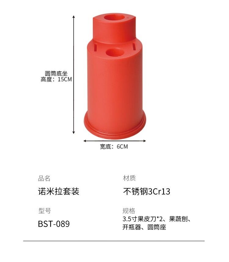 商品名称:栢士德不锈钢小工具套装 3.5寸果皮刀*2、果蔬刨、开瓶器、圆筒BST-089