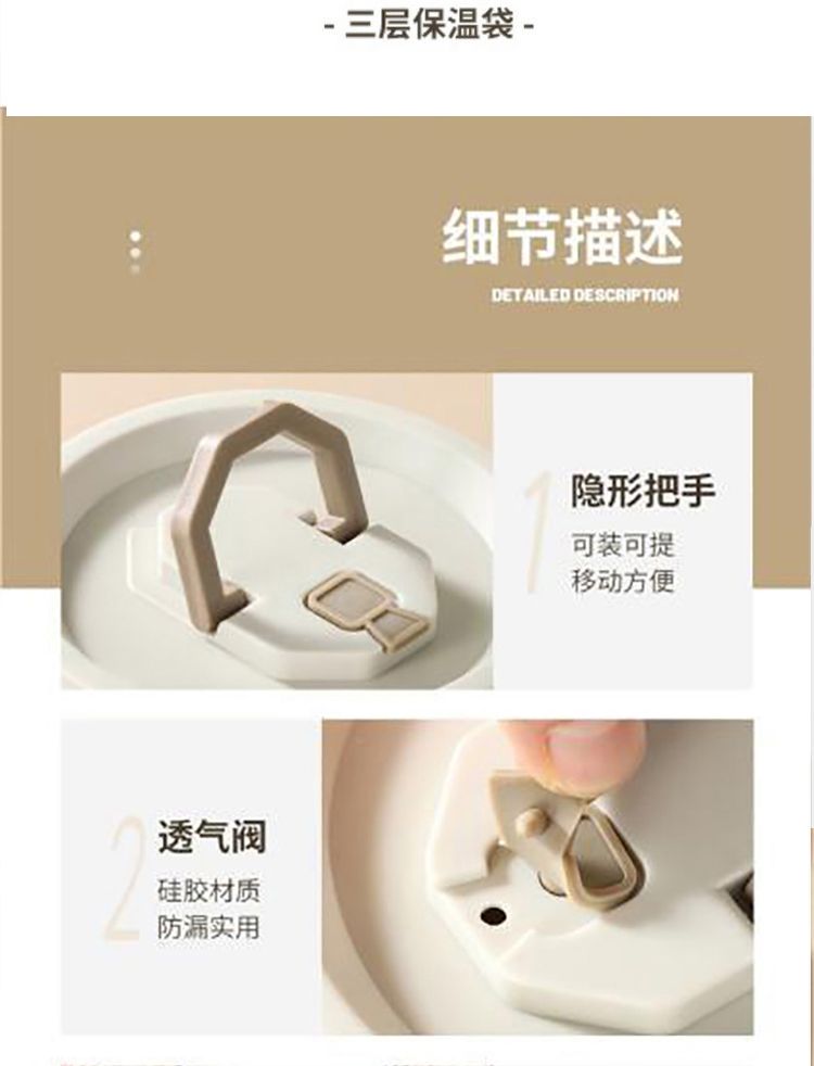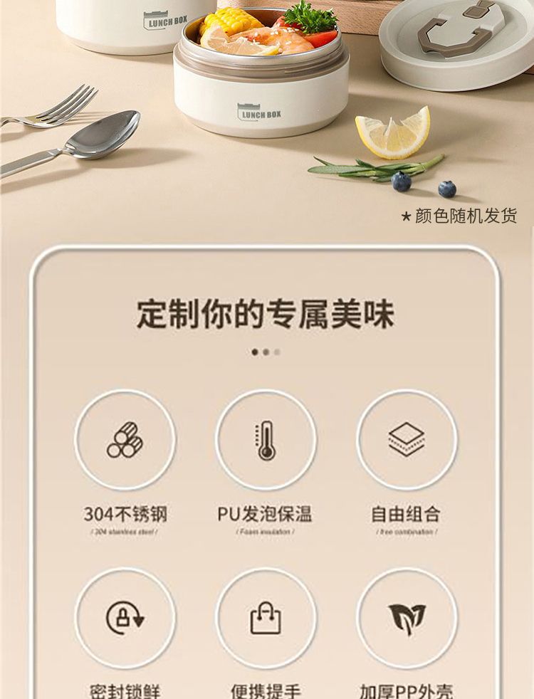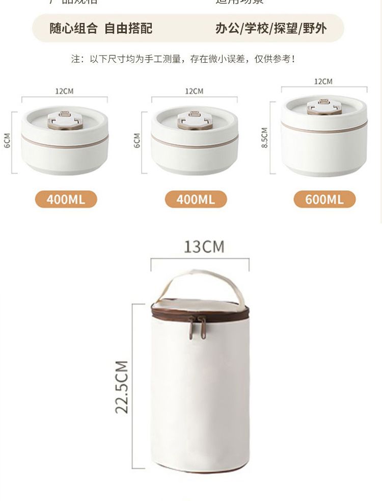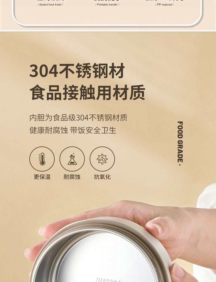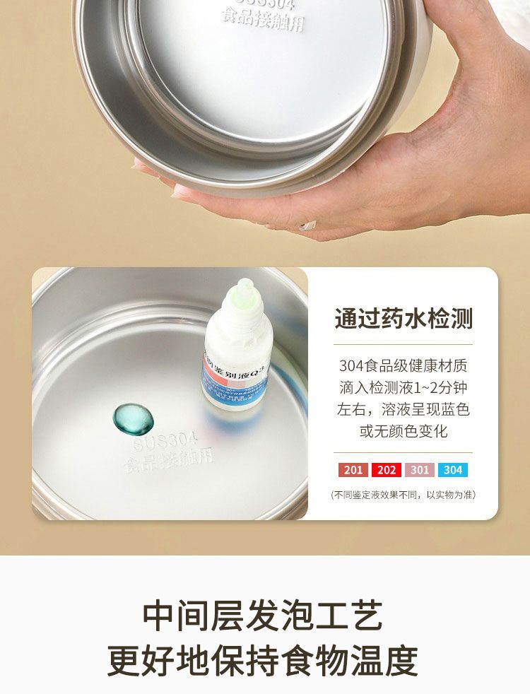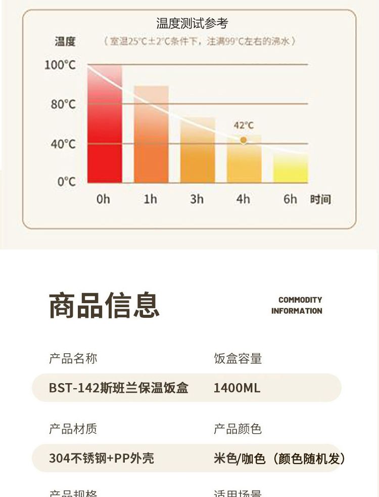 商品名称:栢士德(BYSTON)304食品级不锈钢BST-142三层保温便携便当盒 饭盒+保温袋1400ML 米色三层独立饭盒14