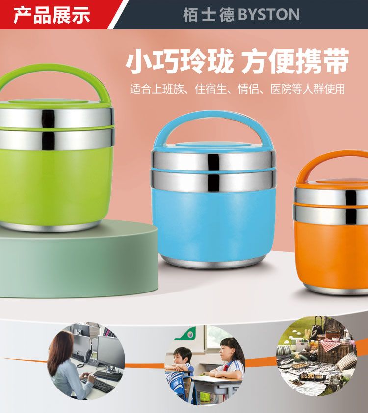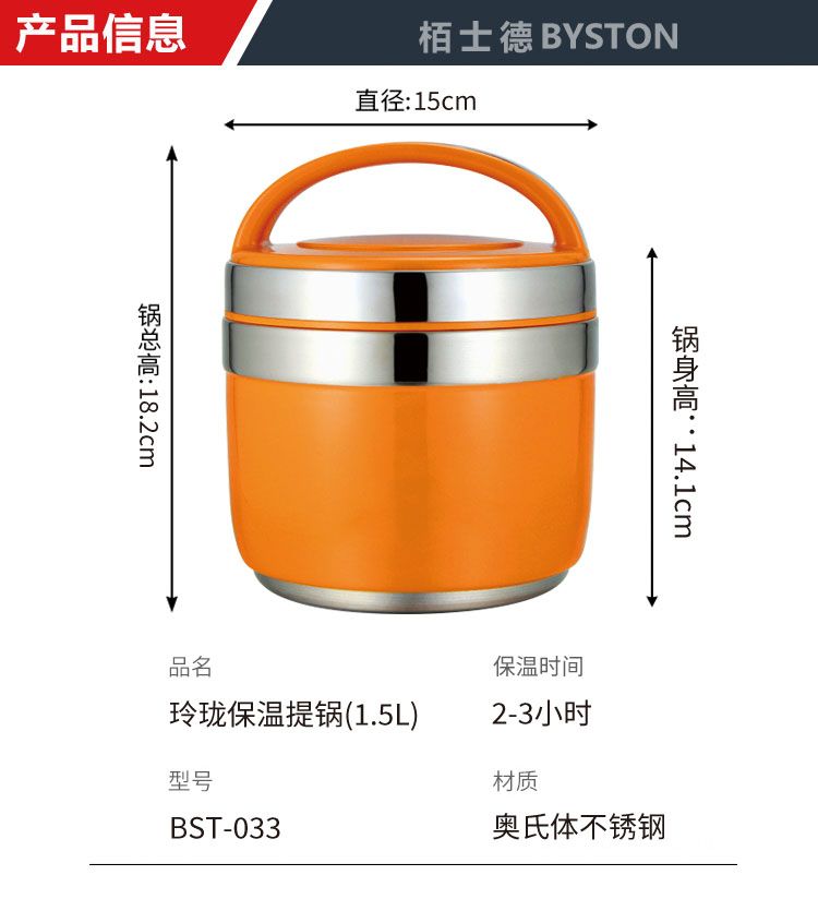 商品名称:栢士德(BYSTON)1.5L玲珑保温提锅不锈钢双层上班族学生提锅便当盒BST-033