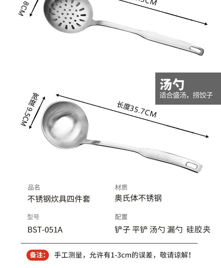 商品名称:栢士德BYSTON不锈钢炊具四件套汤勺+漏勺+平铲+铲子BST-051A
