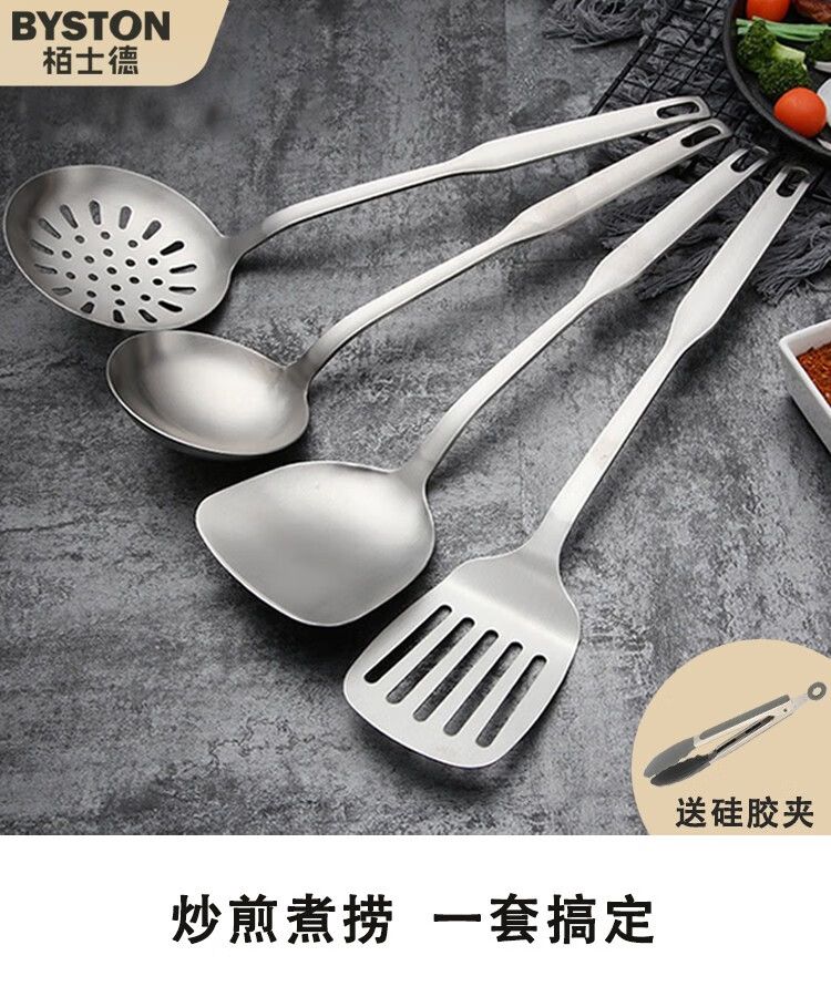 栢士德BYSTON不锈钢炊具四件套汤勺+漏勺+平铲+铲子BST-051A
