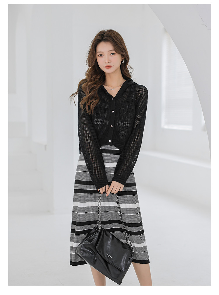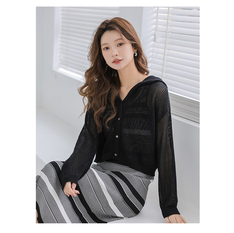 春夏连帽镂空针织开衫温柔甜美针织外套上衣空调服 780355