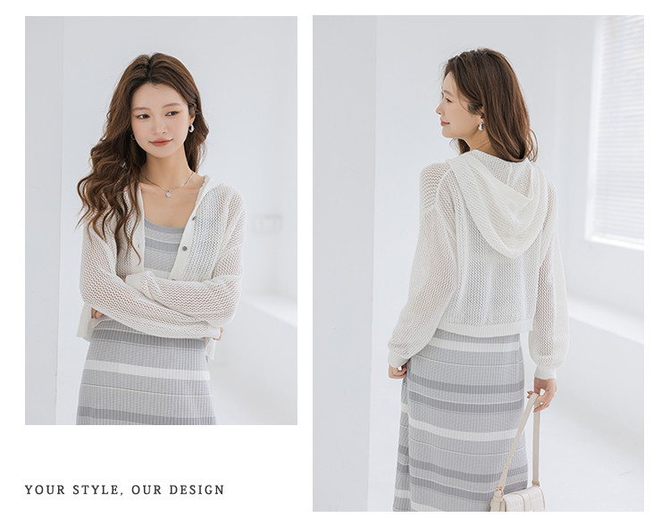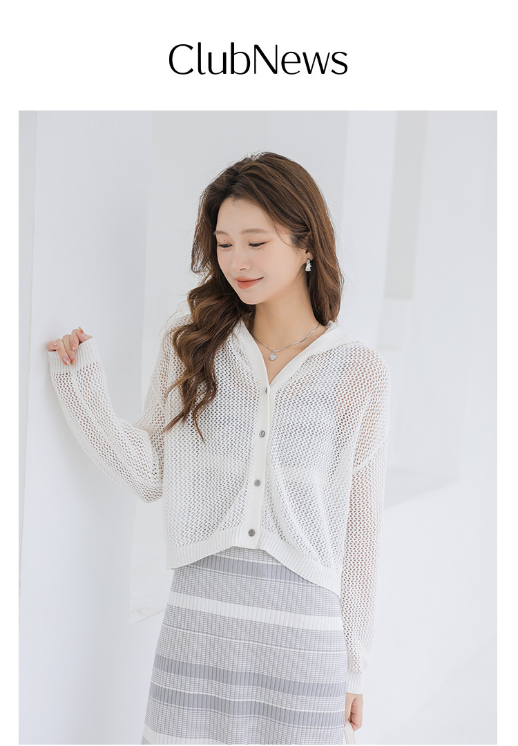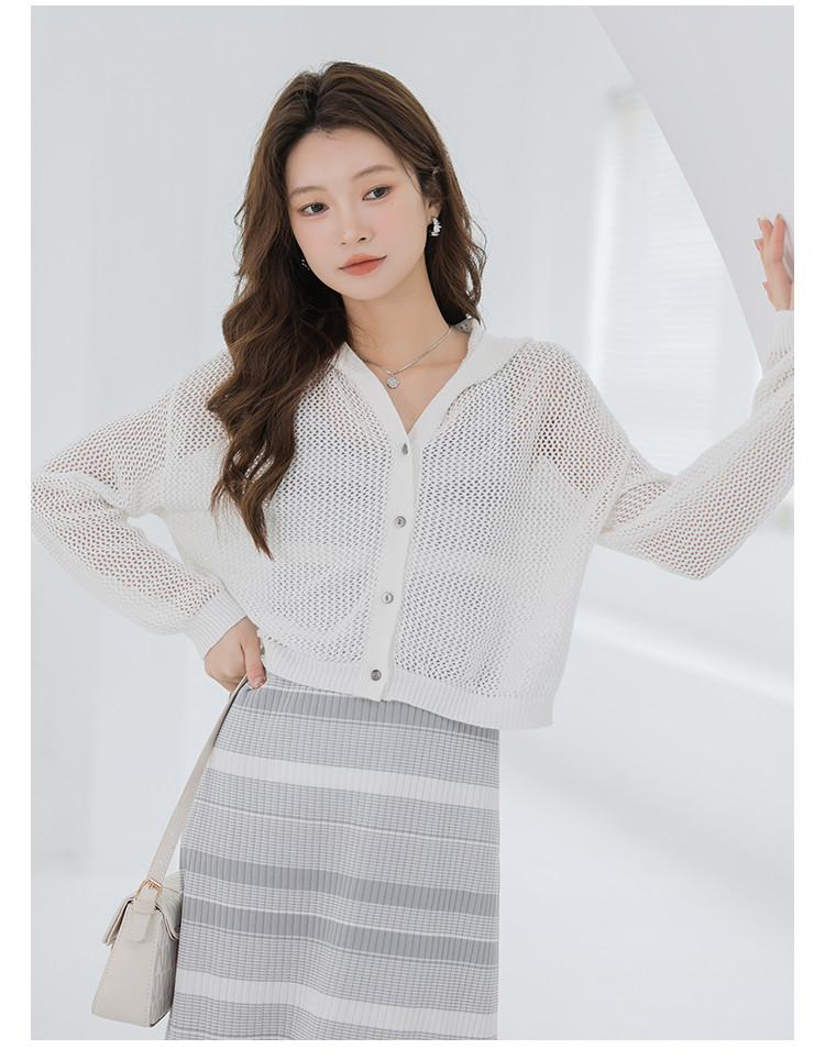 商品名称:春夏连帽镂空针织开衫温柔甜美针织外套上衣空调服 780355