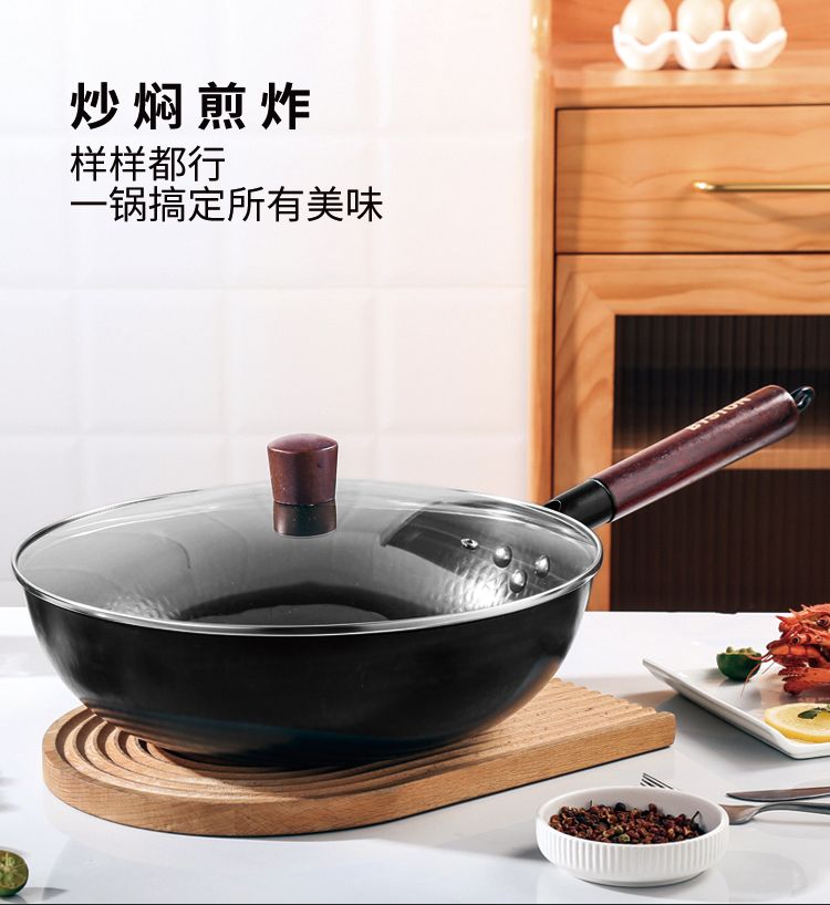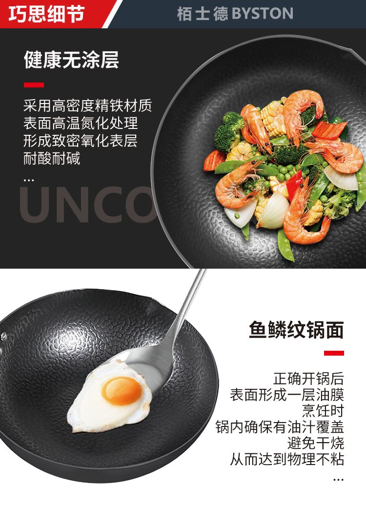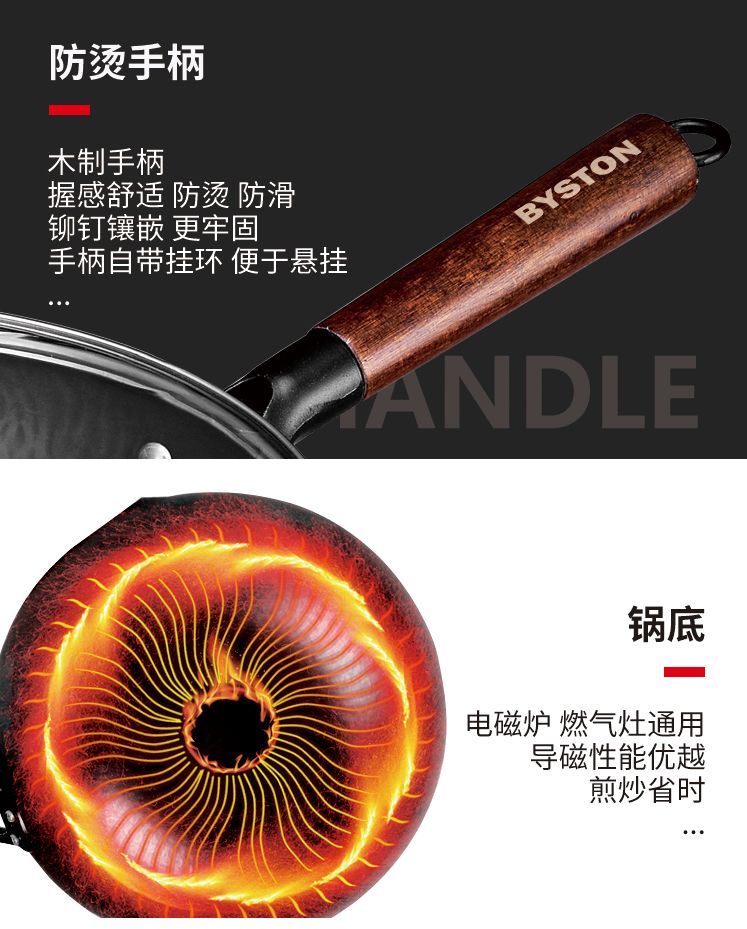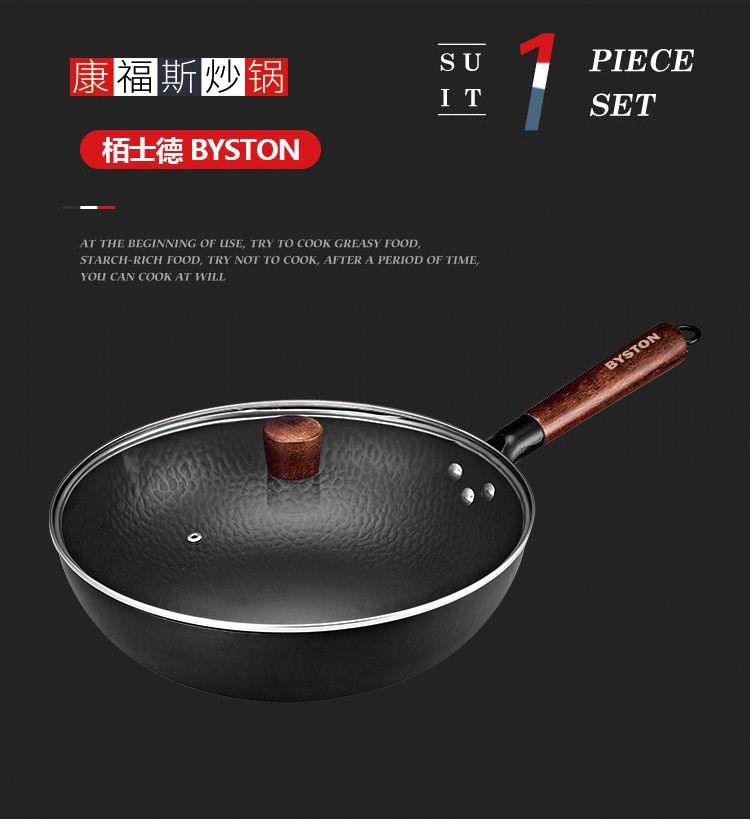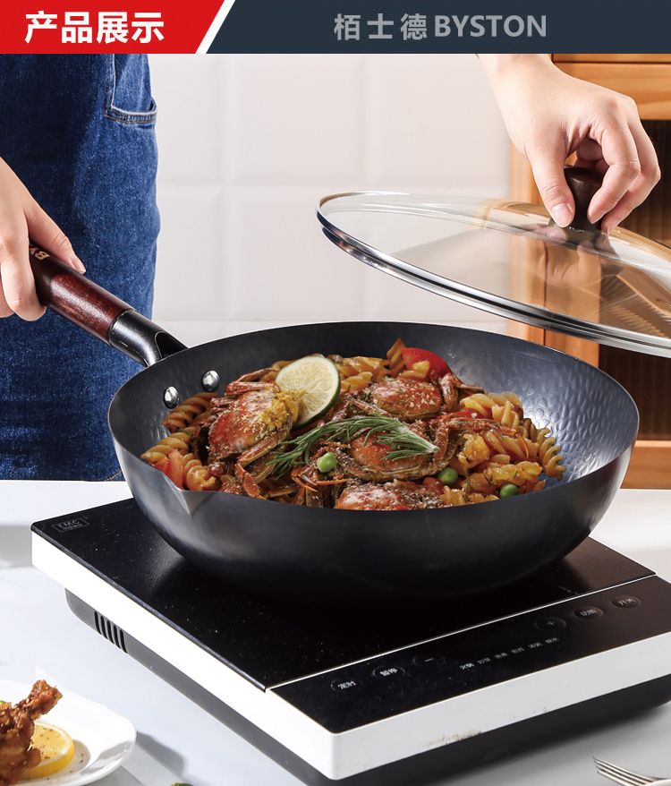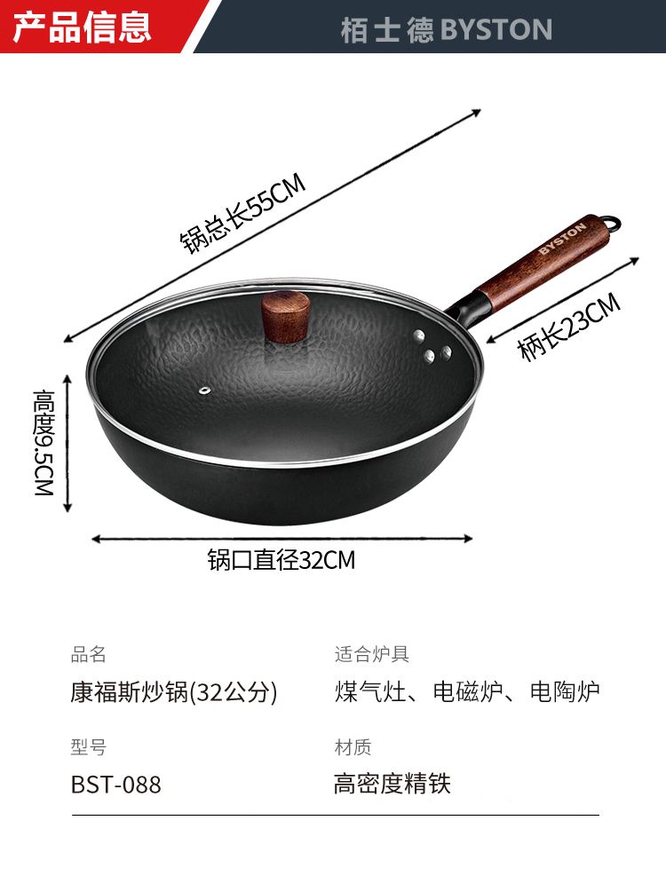 商品名称:栢士德BYSTON 康福斯炒锅 铁锅 32CM炒锅 带玻璃盖 BST-088 少油烟家用