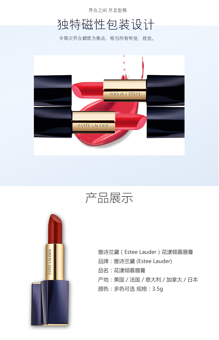 商品名称:Estee Lauder/雅诗兰黛 花漾倾慕唇膏 3.5g 持久显色 多色号可选