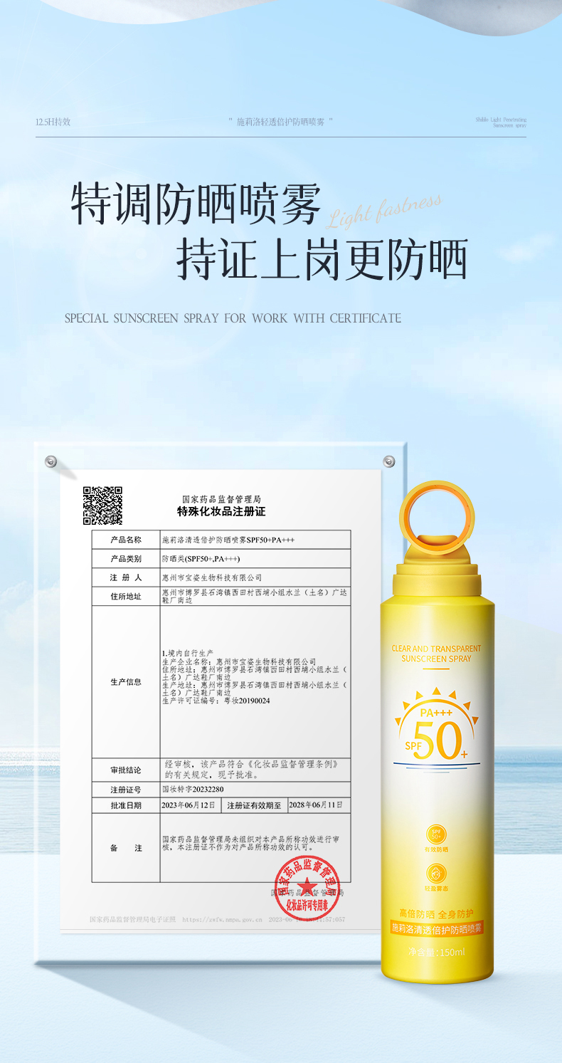 商品名称:施莉洛 轻透倍护防晒喷雾 150ml