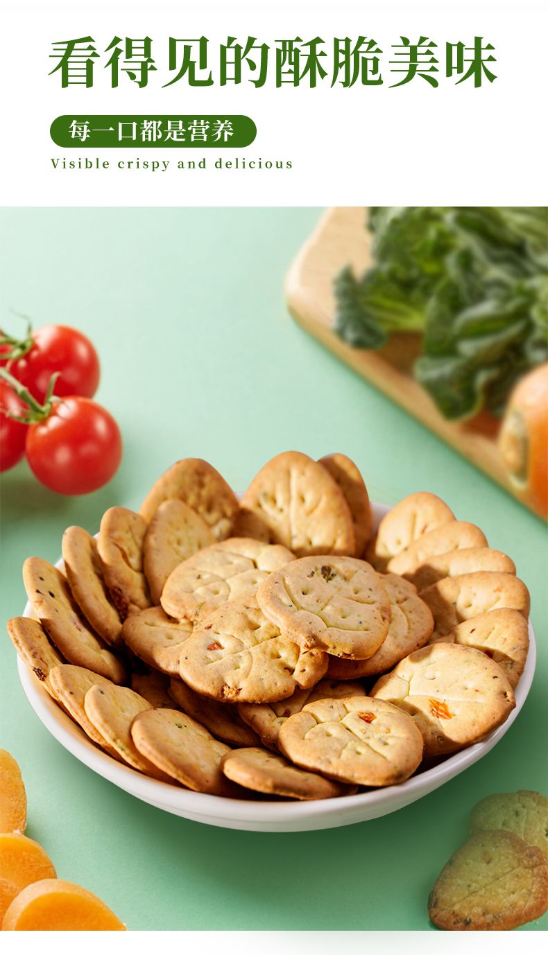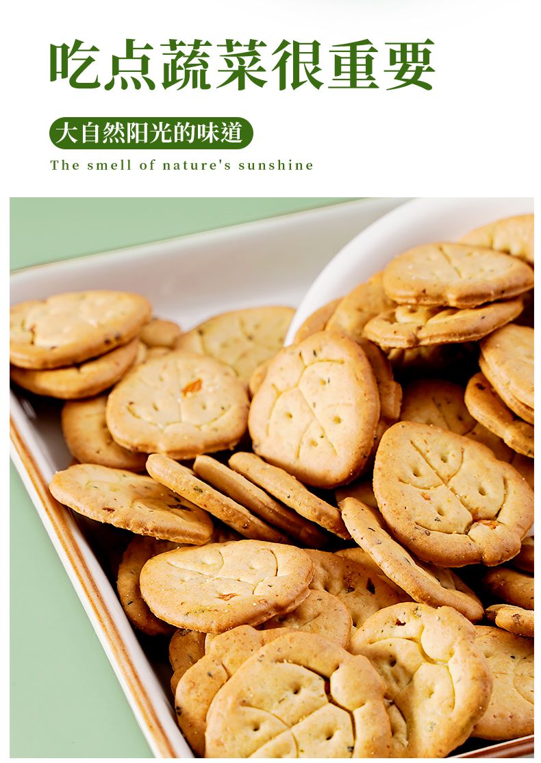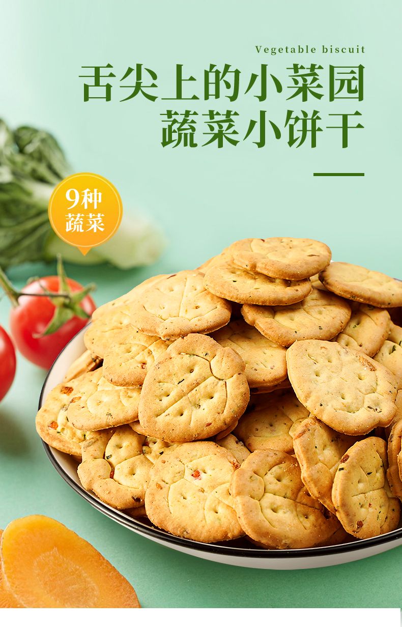 商品名称:七点食分 九蔬饼干 舌尖上的小菜园 9种搭配一次满足 薄脆小饼咸味零食