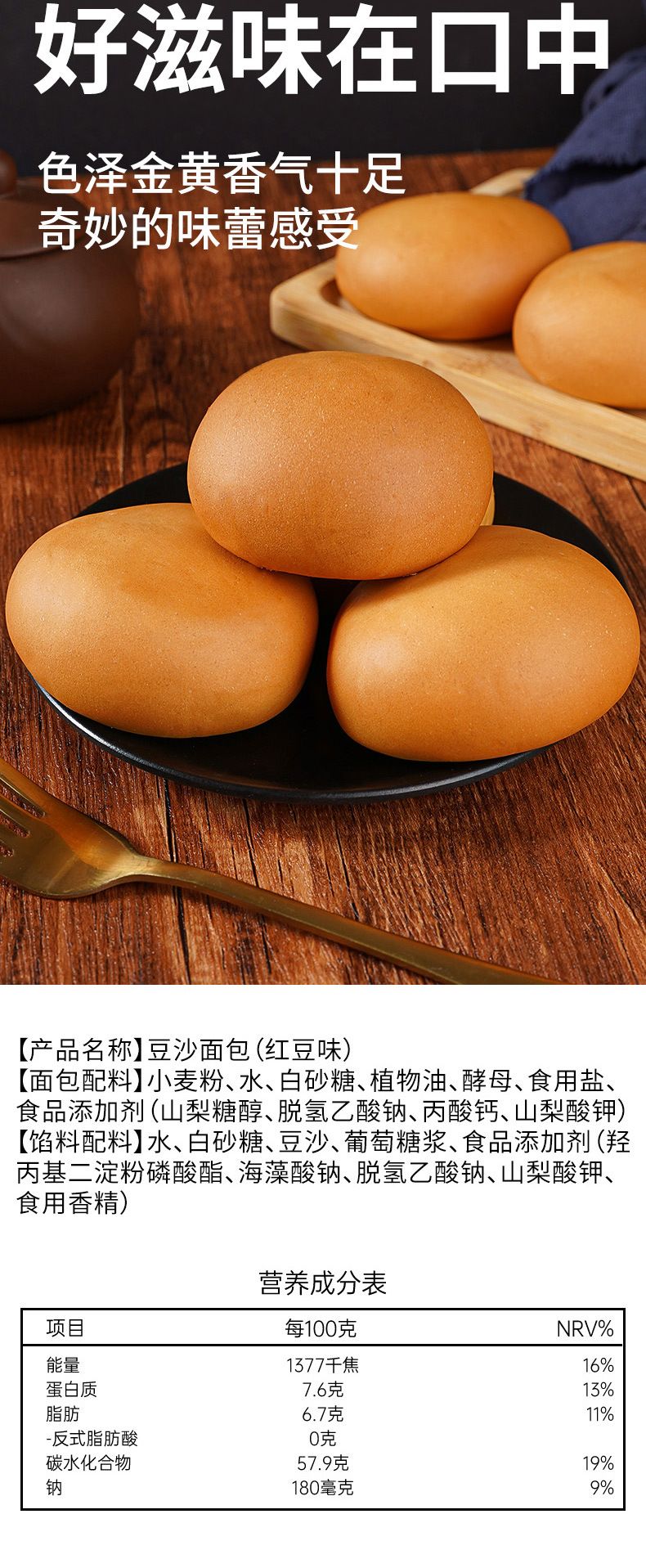 商品名称:七点食分 老式红豆沙面包 0反式脂肪酸