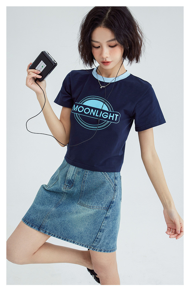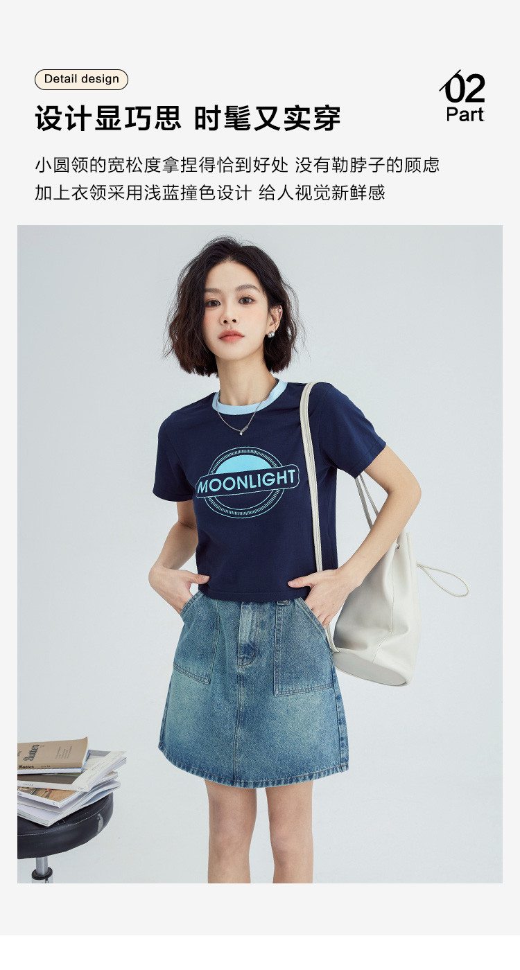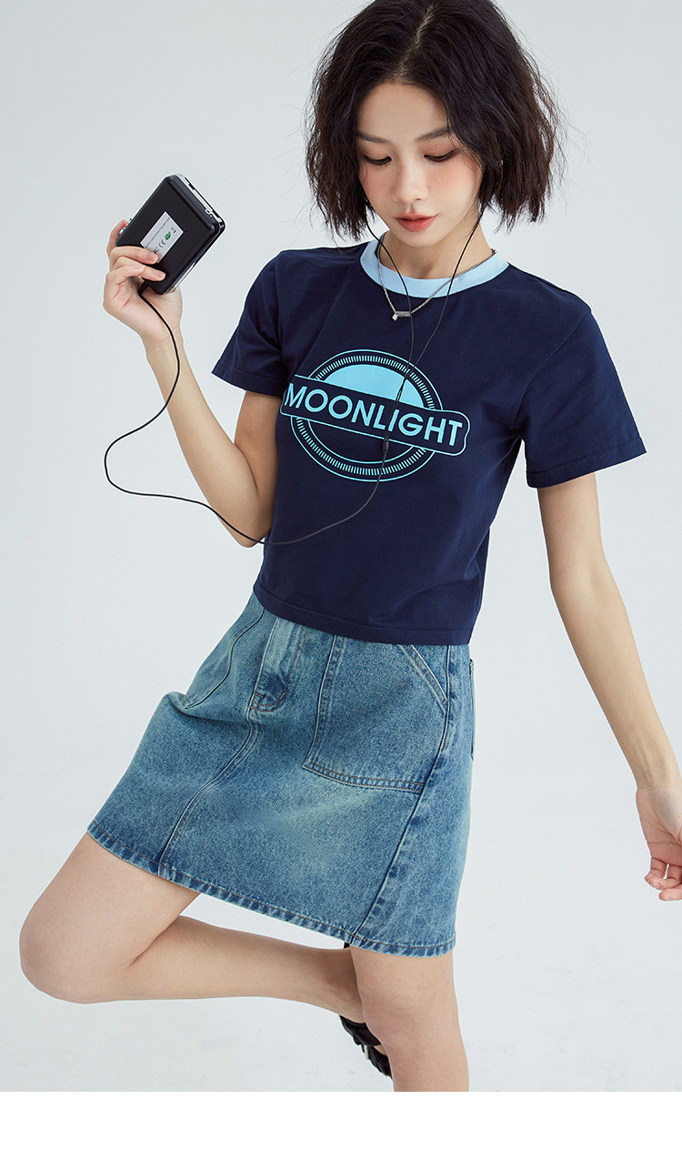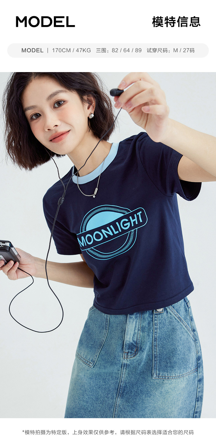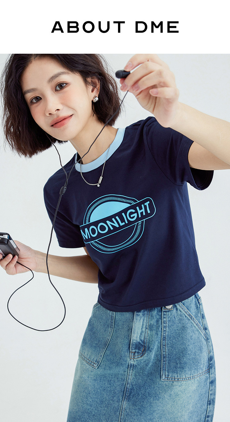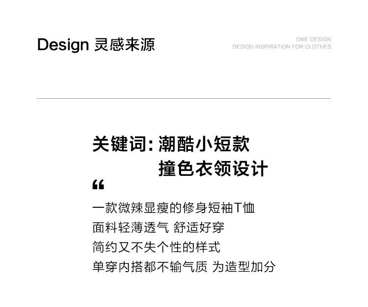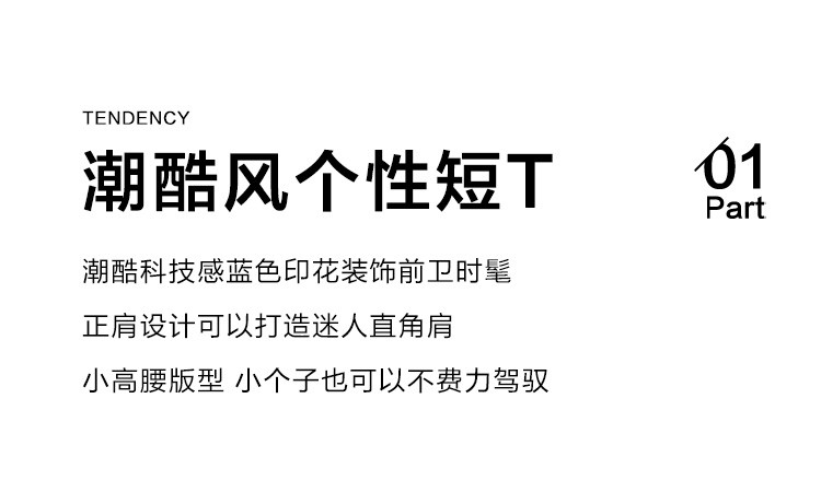 商品名称:【潮酷风个性小短T】夏款辣妹风撞色印花设计感修身T 978050