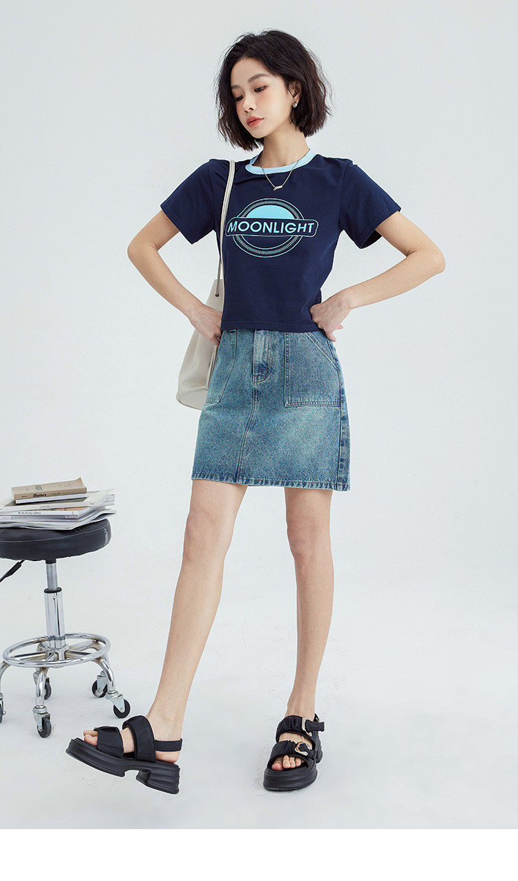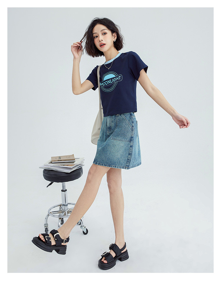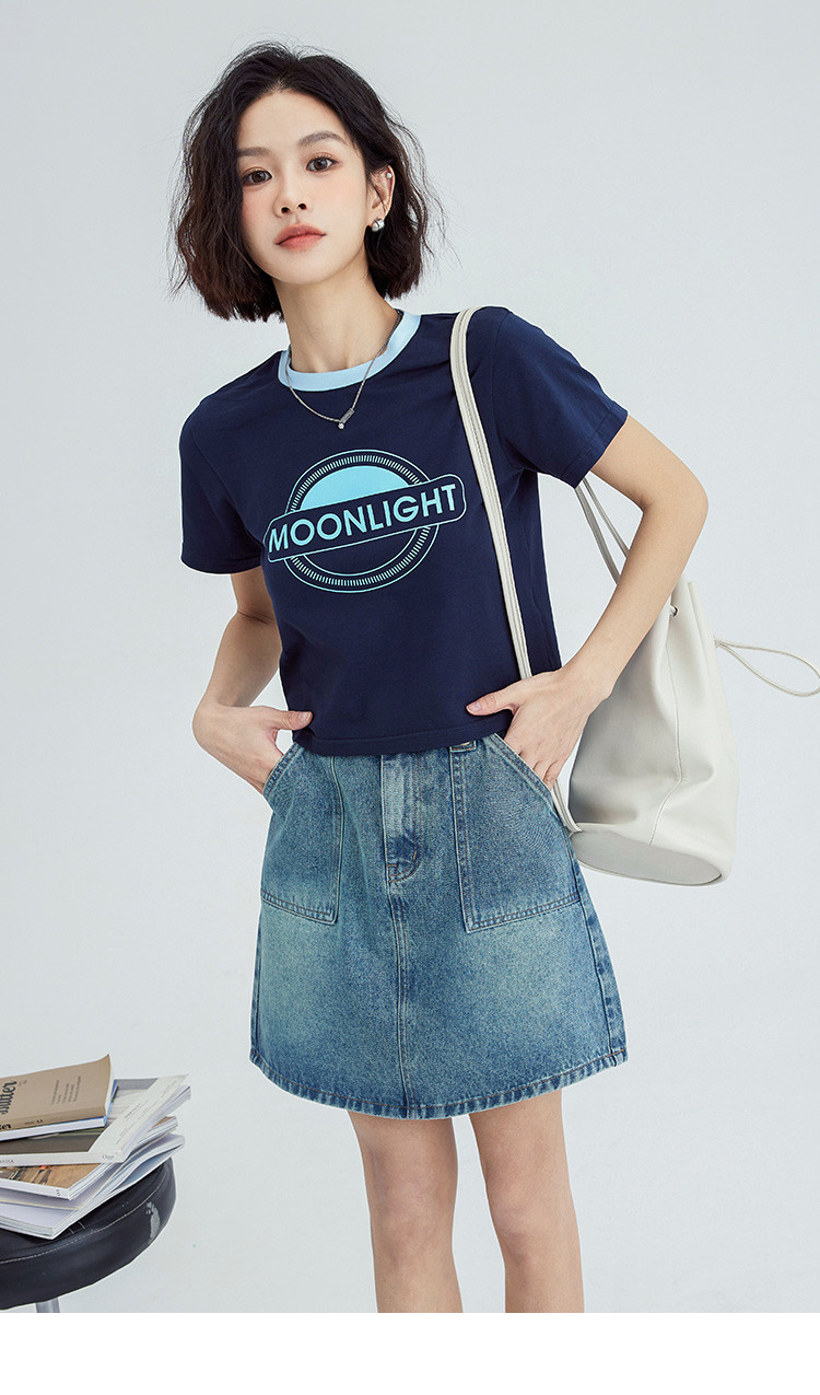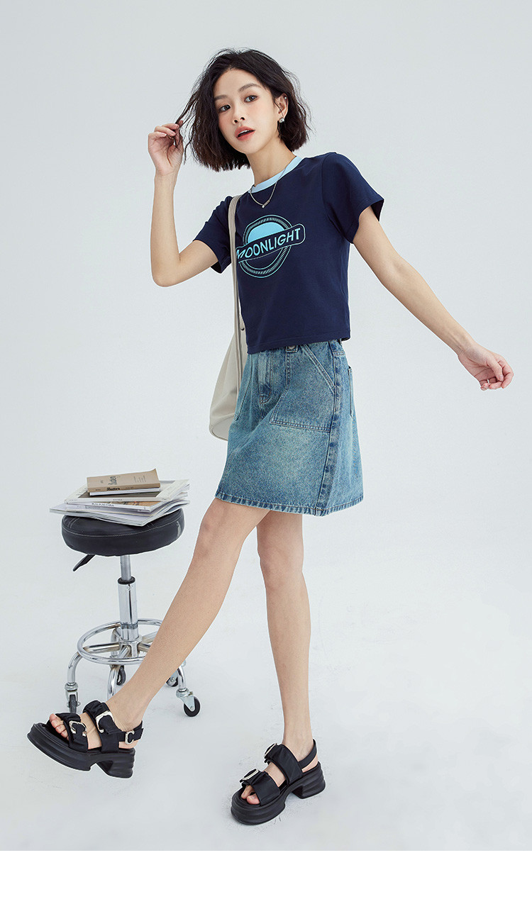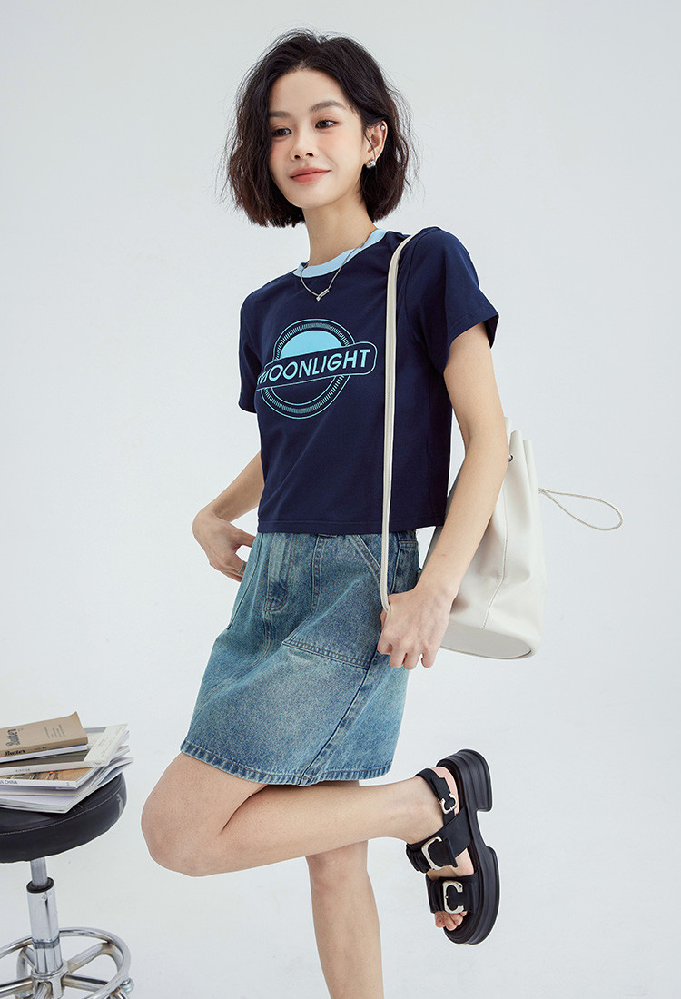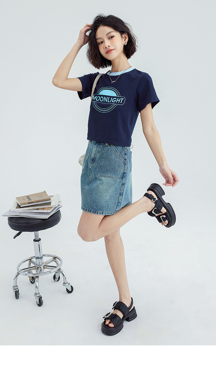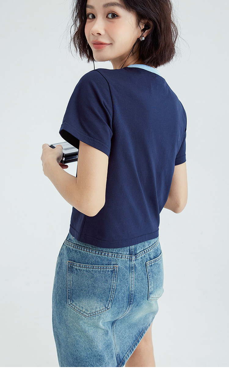 商品名称:【潮酷风个性小短T】夏款辣妹风撞色印花设计感修身T 978050