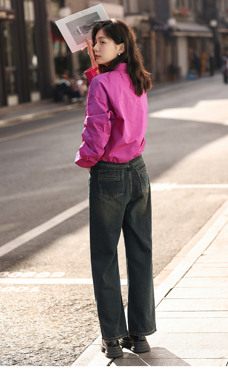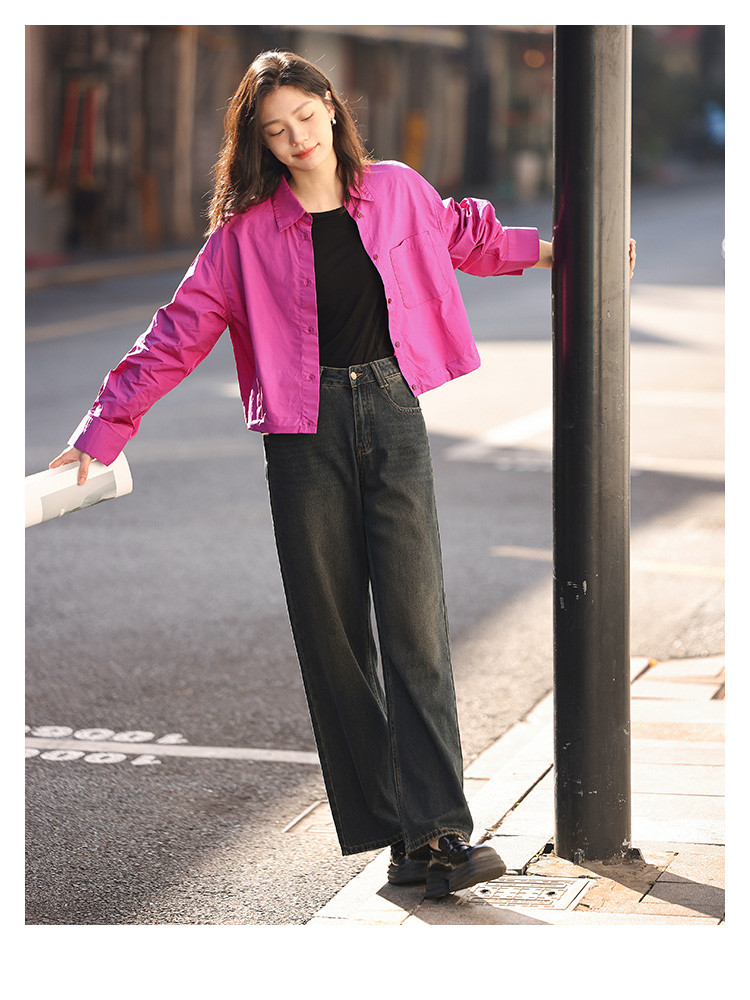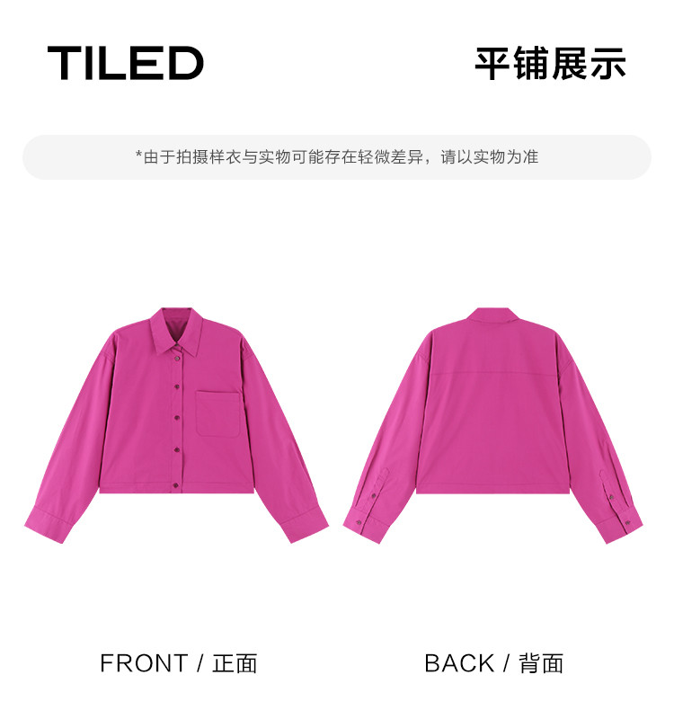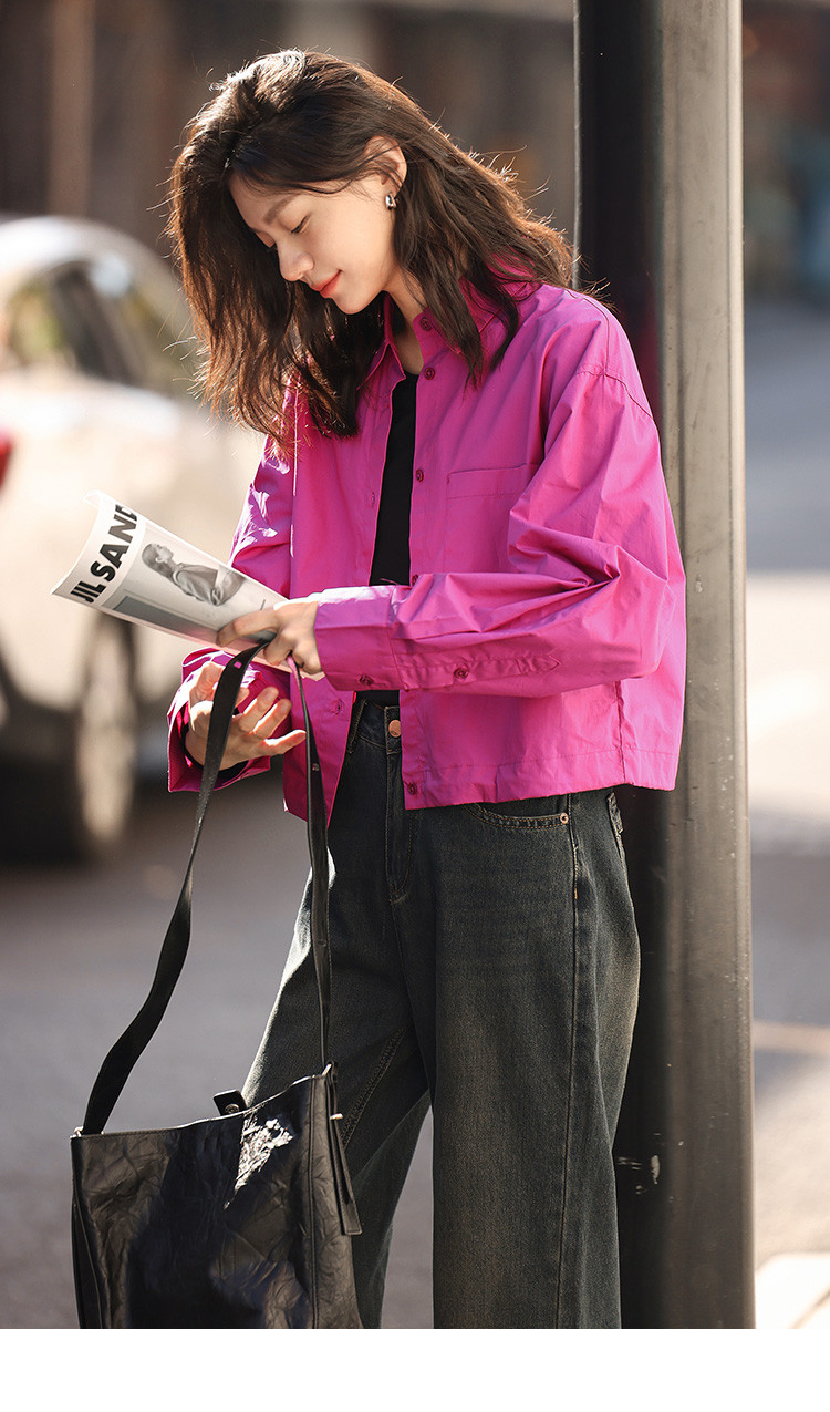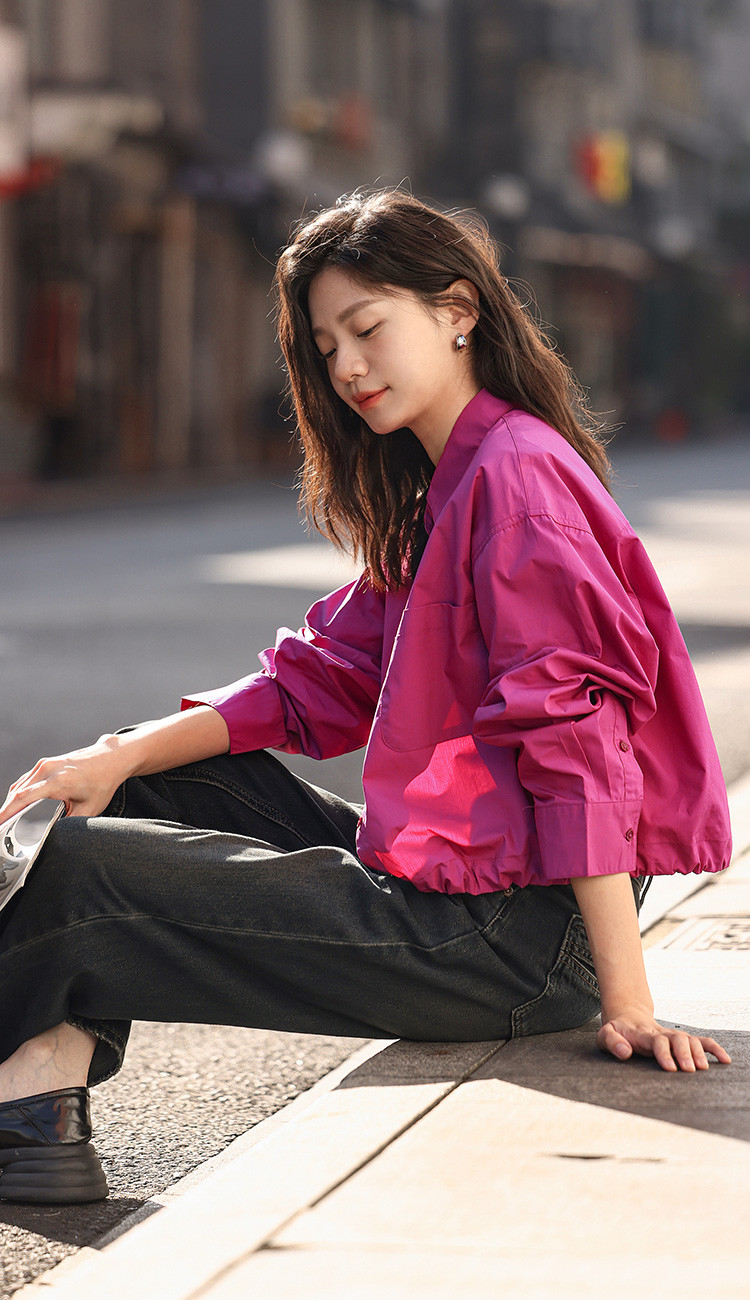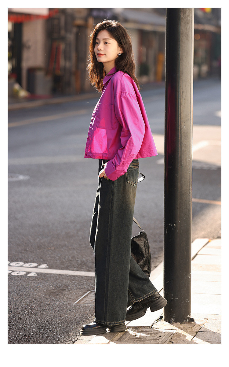 【亮眼玫紫色衬衫】秋款个性下摆抽绳短款松弛感衬衣女 092610