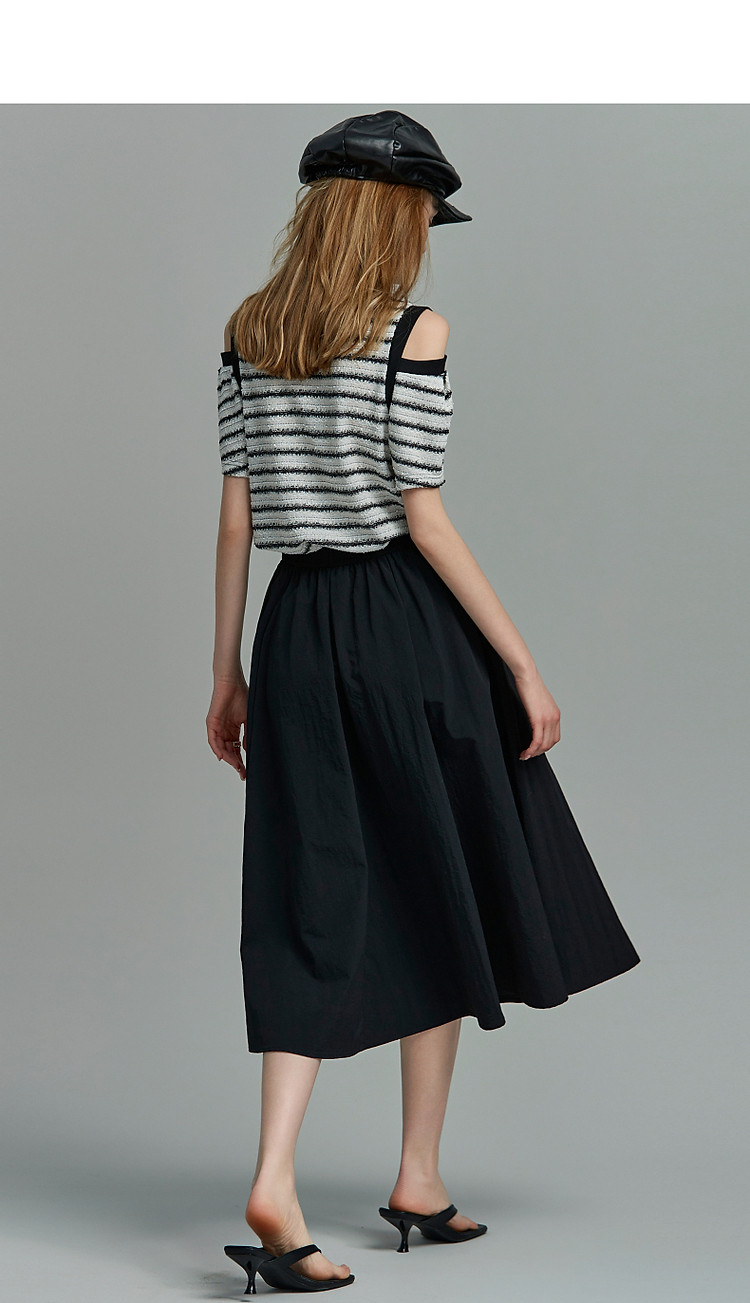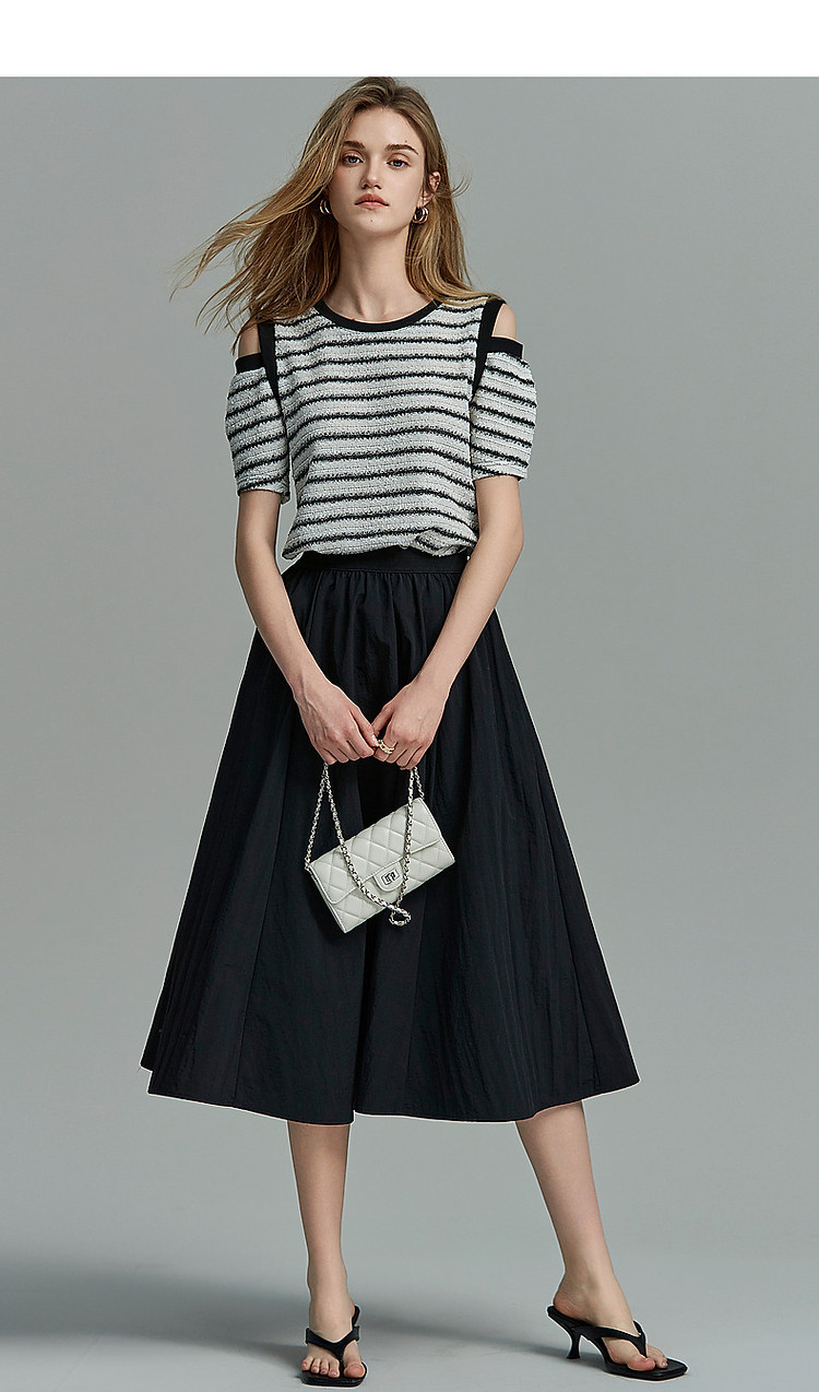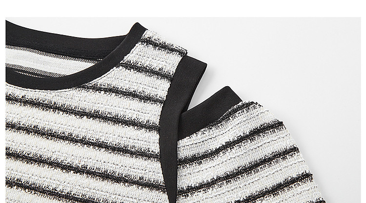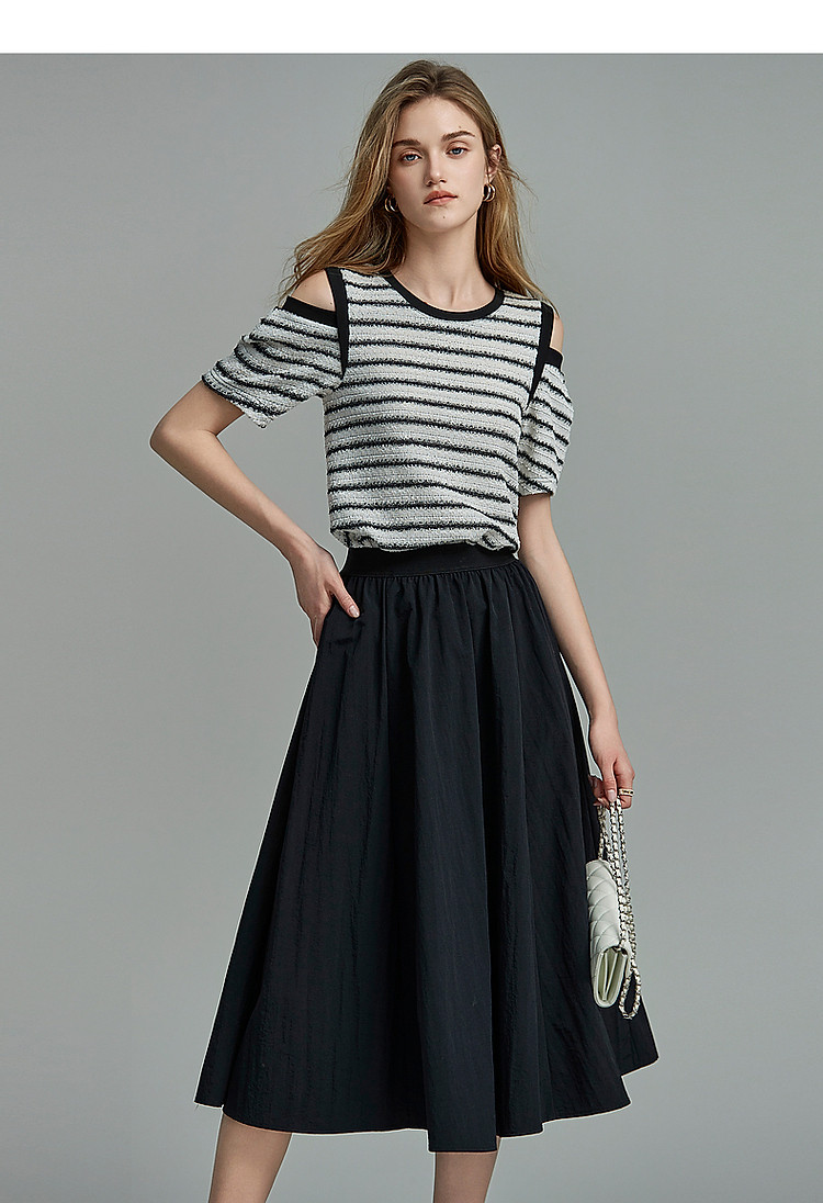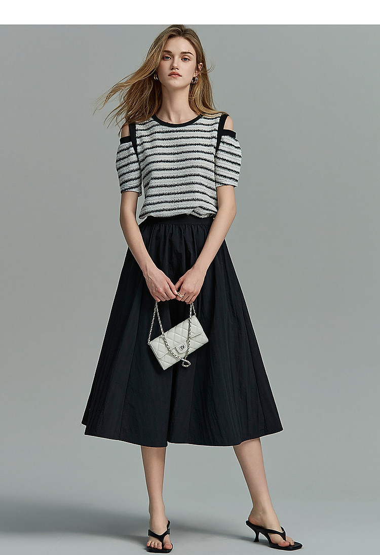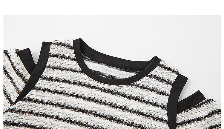 【时髦设计感露肩】夏都市通勤活力条纹t恤肌理质感女式t恤 355841