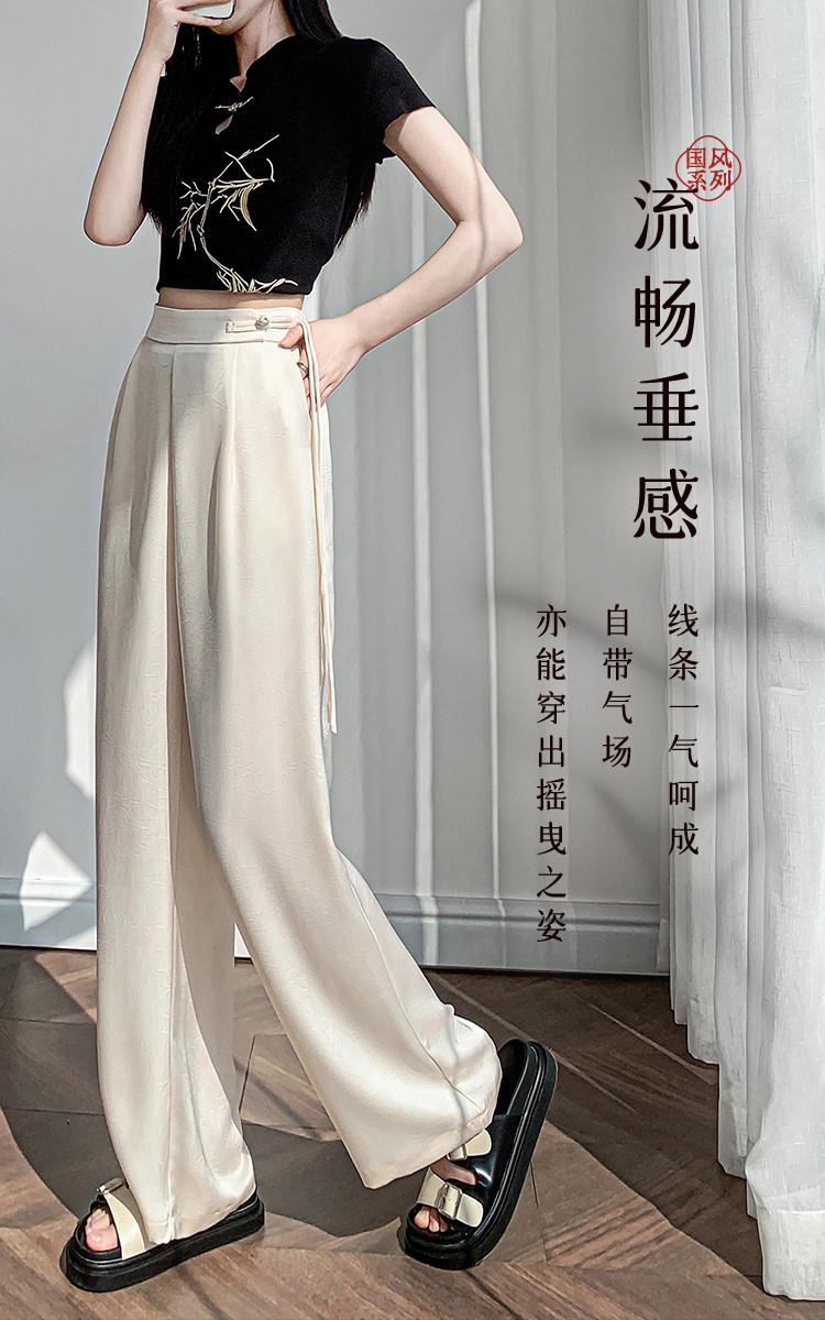 商品名称:【高级感松紧直筒裤】夏双面缎抓皱设计感小众显瘦女式休闲裤 599000