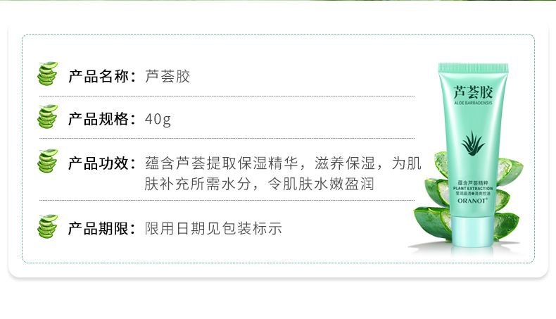 商品名称:奥兰诺芦荟胶 补水保湿芦荟凝胶护手霜面霜 40g 保湿补水
