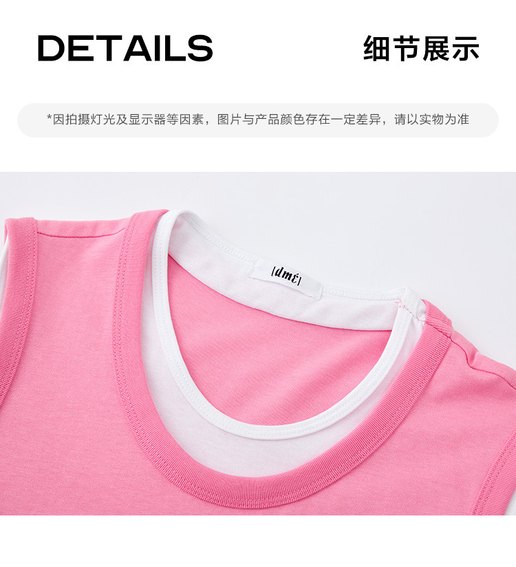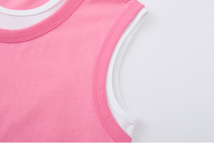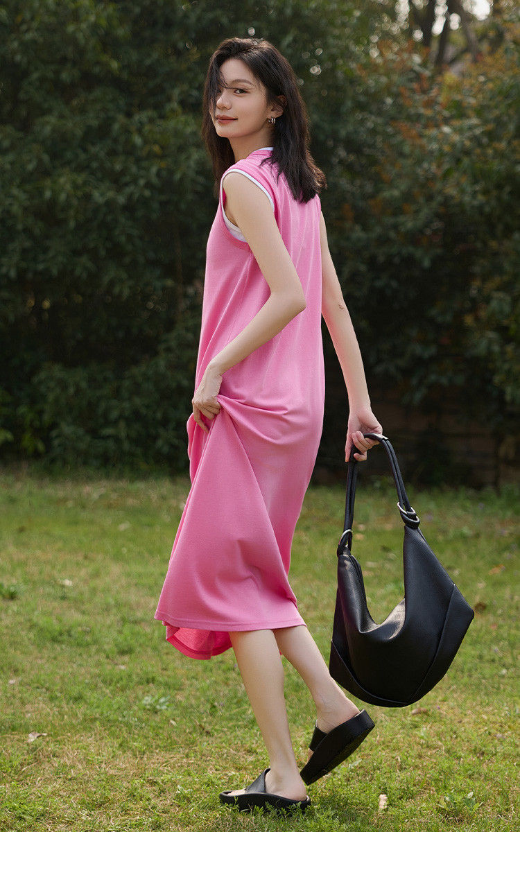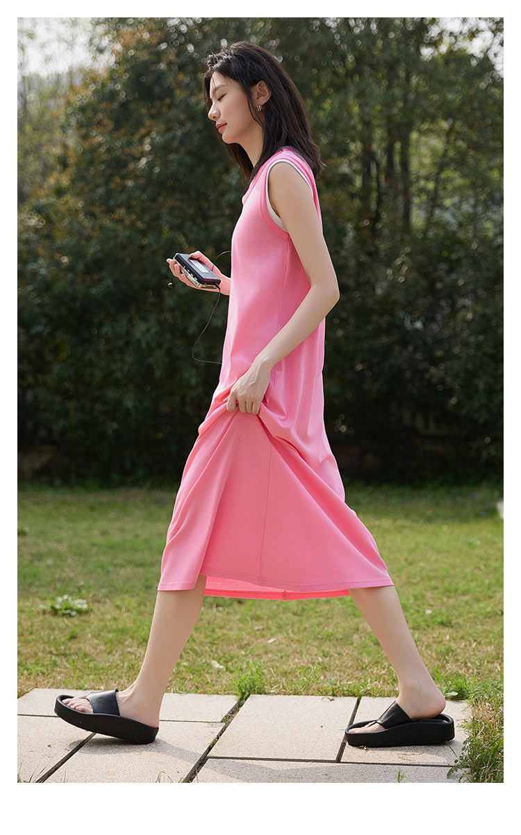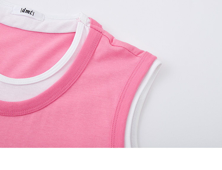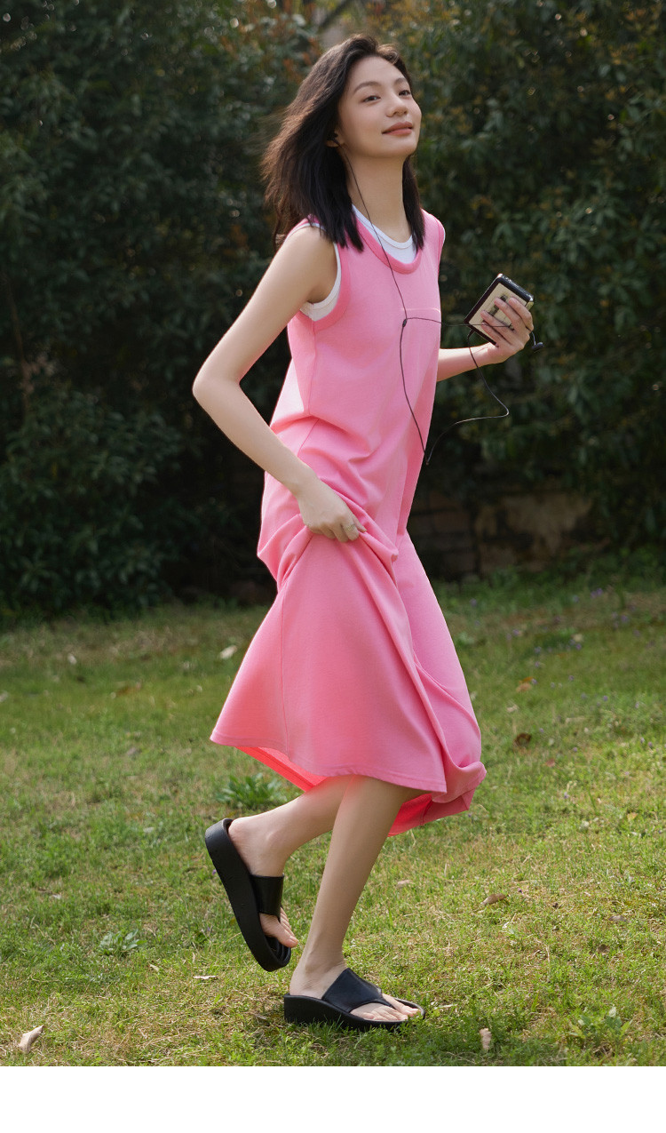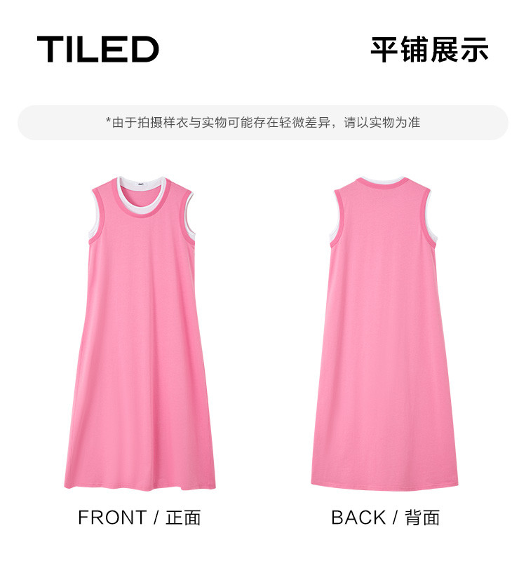 商品名称:【假两件粉白撞色长裙】夏款圆领无袖百搭针织长款连衣裙 051074