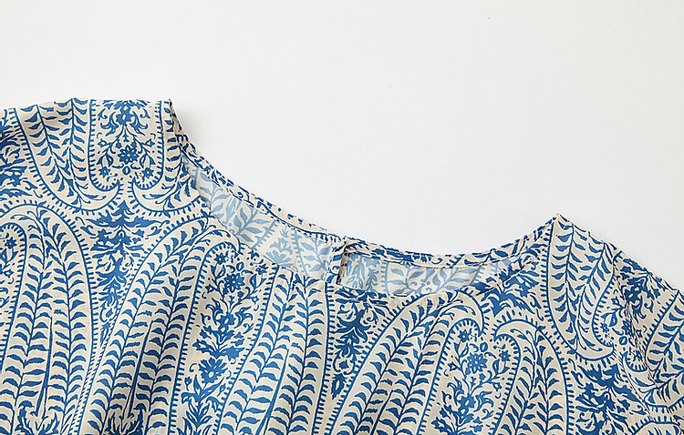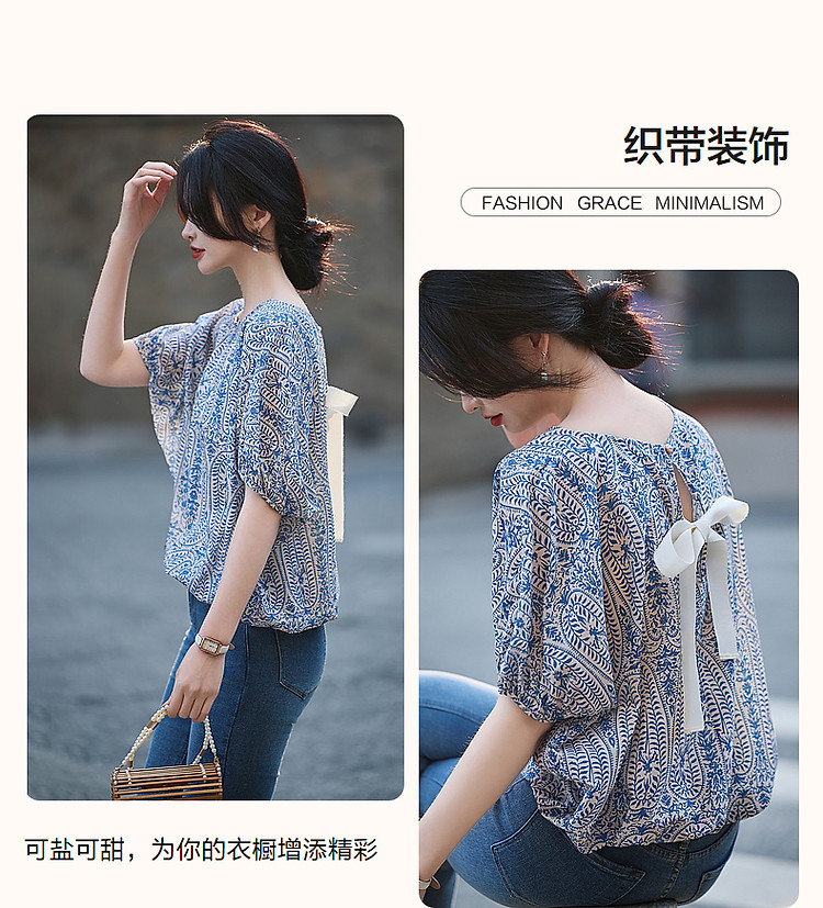 商品名称:【艺术感后背镂空系带】夏文艺印花衬衫灯笼袖舒适遮肉衬衣女上衣 351937