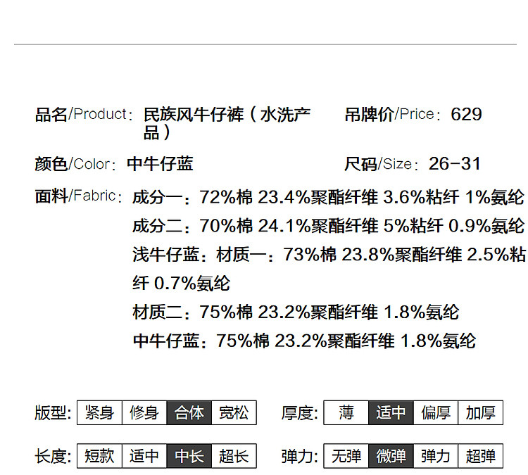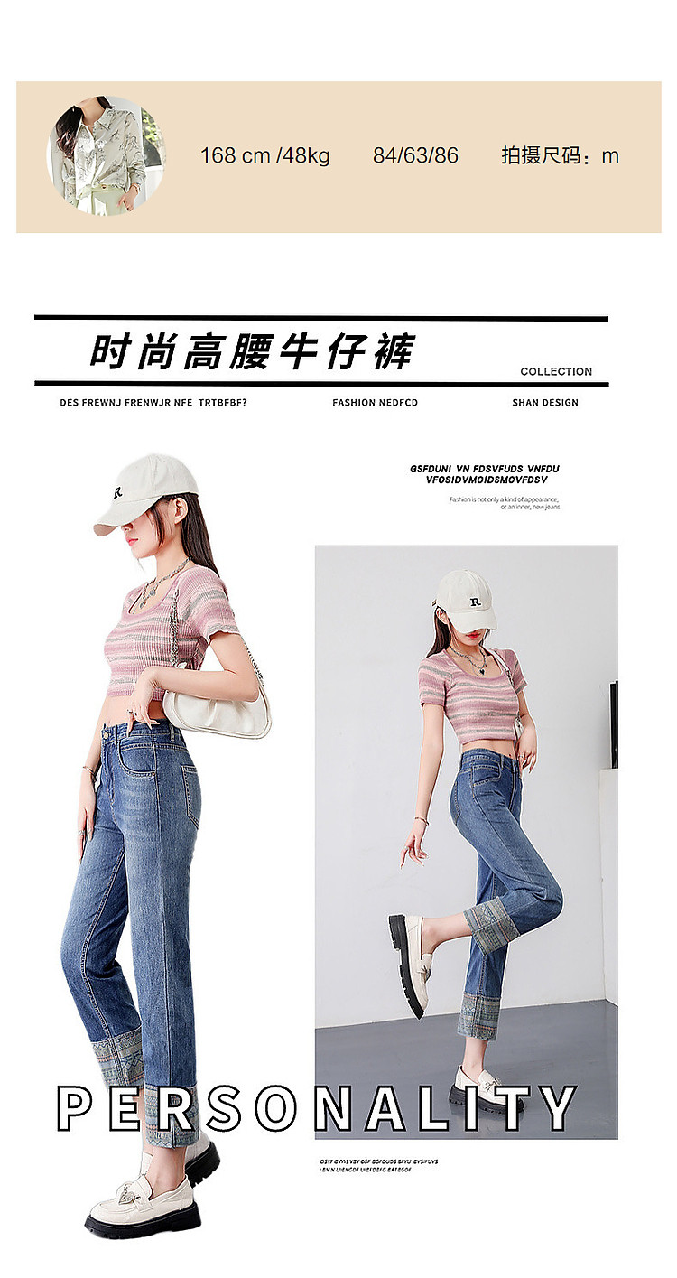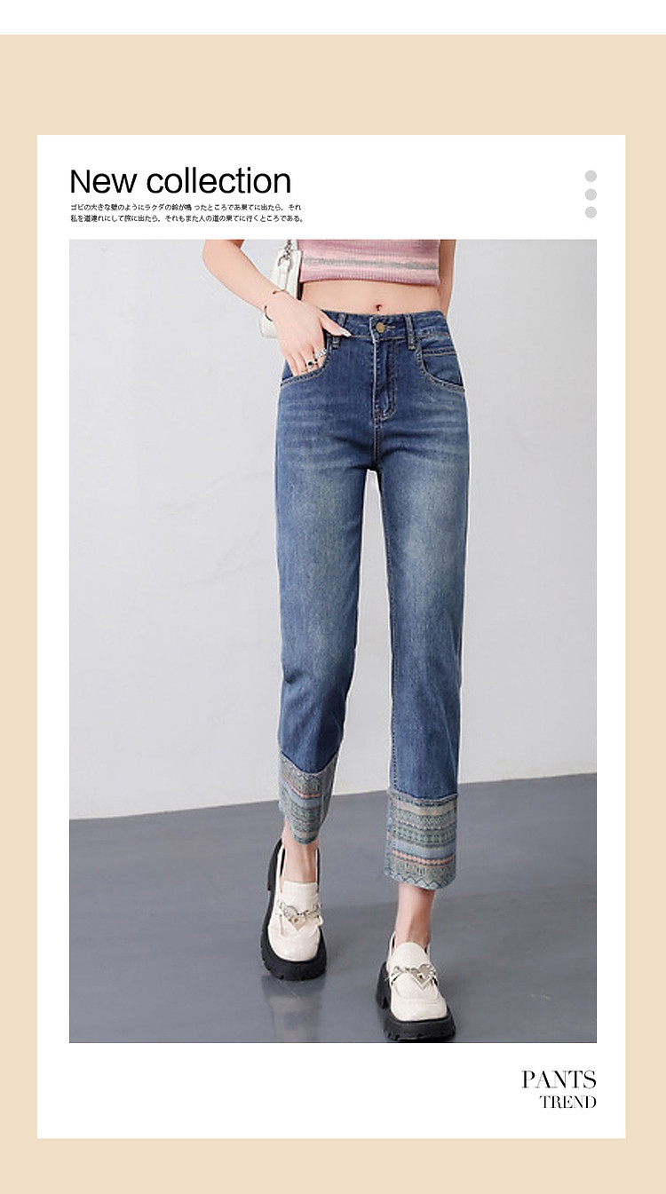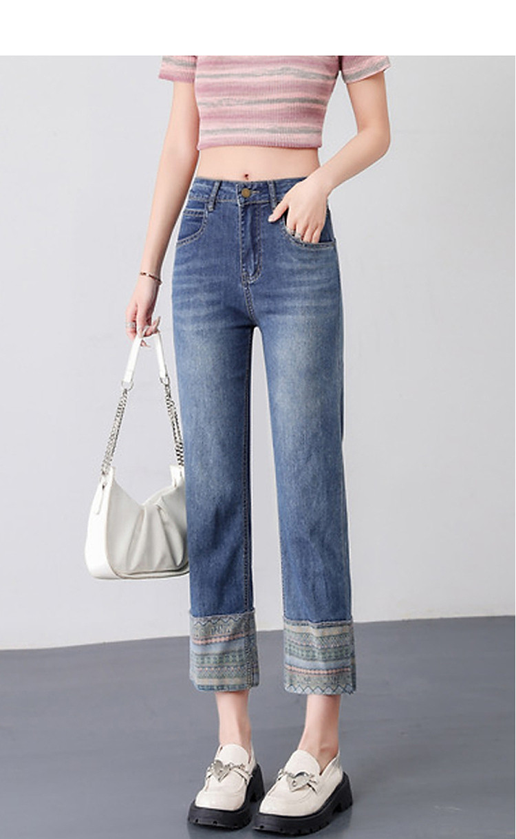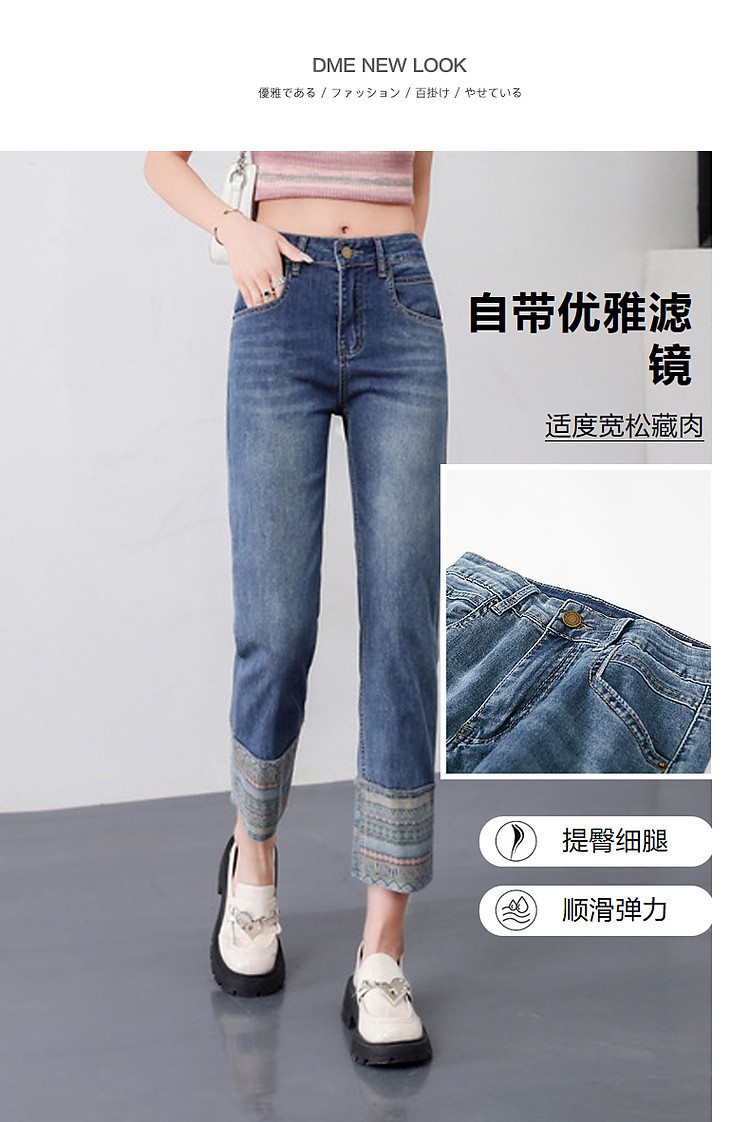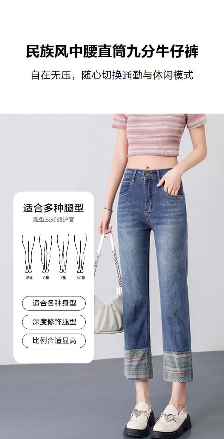 商品名称:【轻民族风】夏季中腰直筒拉链九分裤女裤子女式牛仔裤 852481