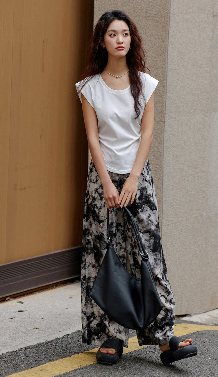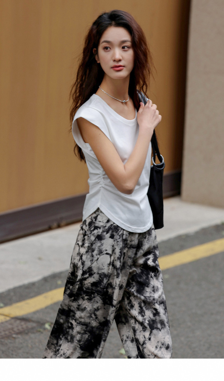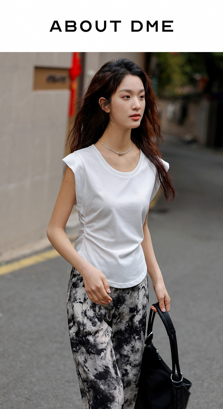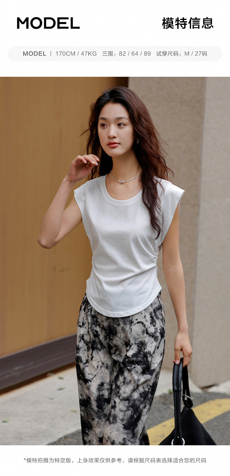 【洋气咖U领无袖T】夏款显腰身腰基础舒适微辣修身T恤 147330
