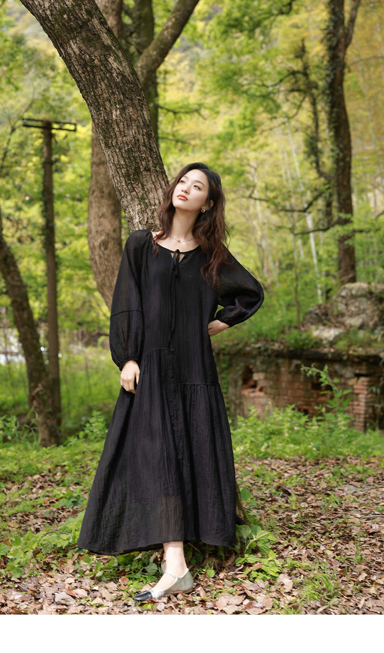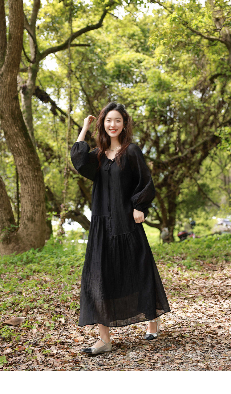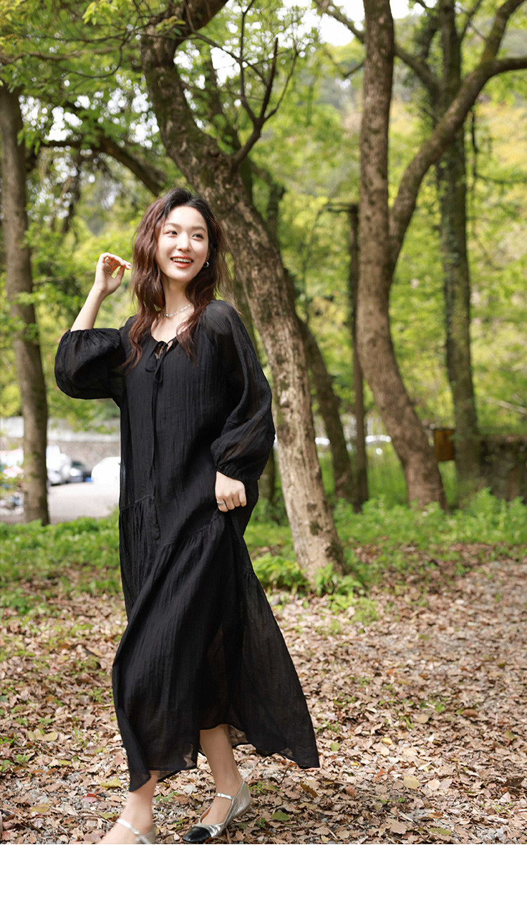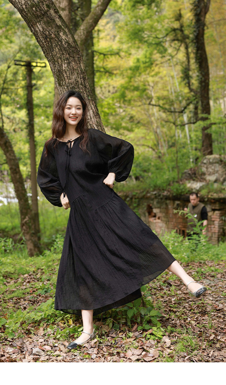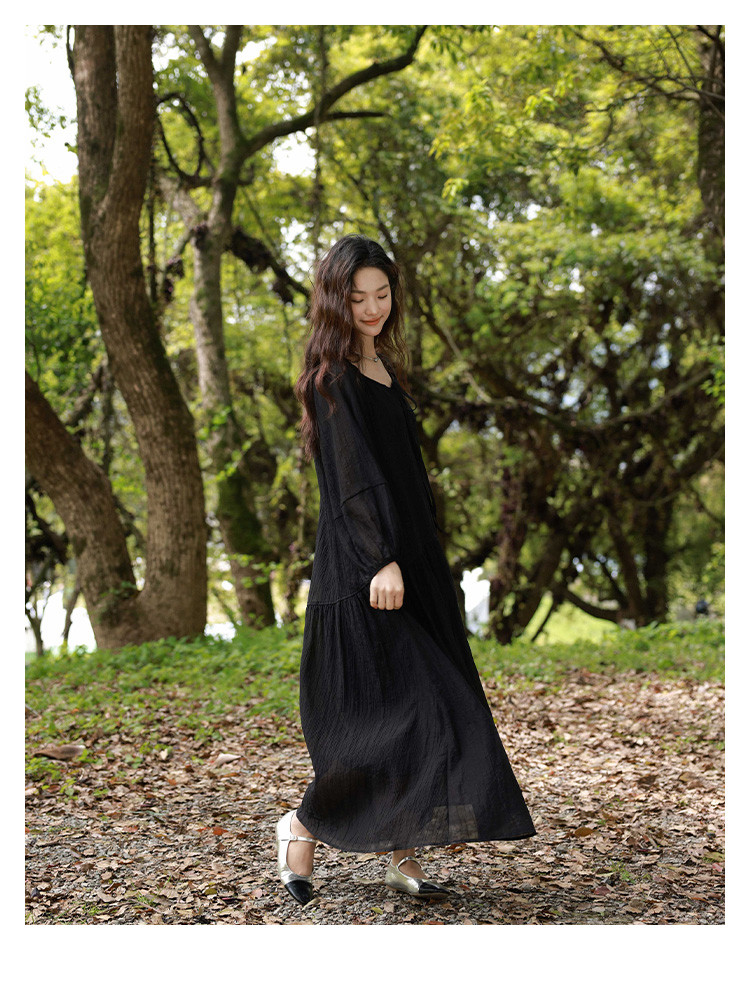 商品名称:【慕夏繁星连衣裙】夏款肌理感显瘦黑色简约气质度假风 030274