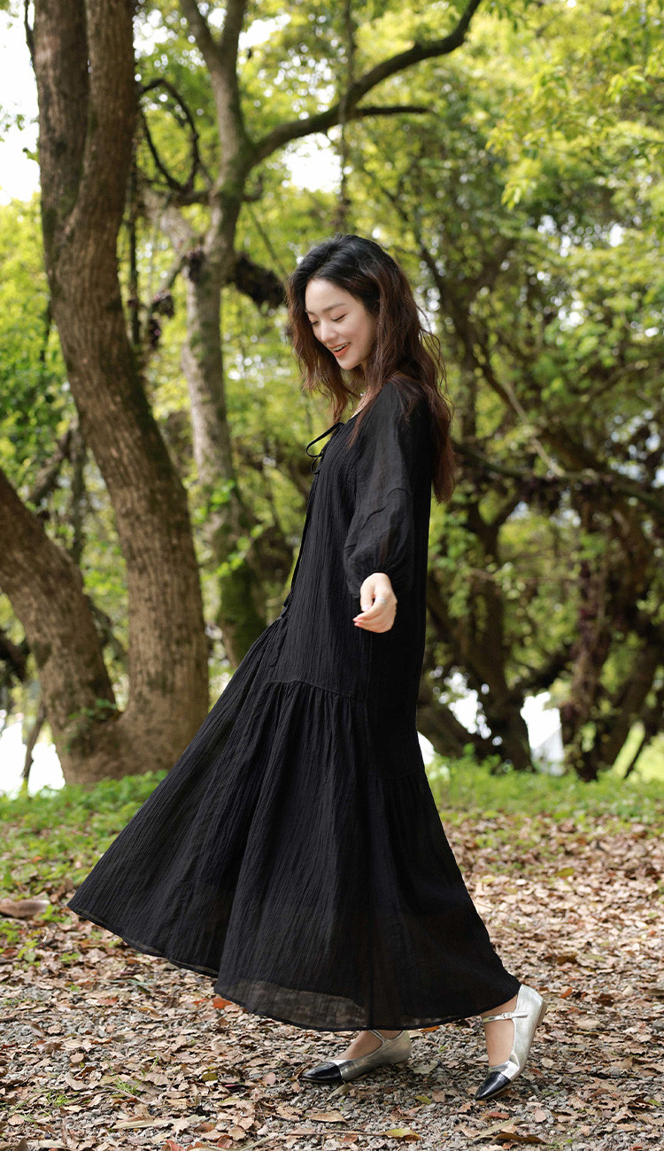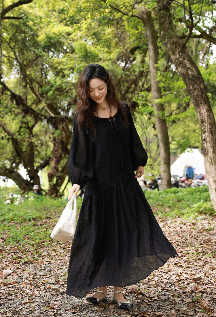 【慕夏繁星连衣裙】夏款肌理感显瘦黑色简约气质度假风 030274