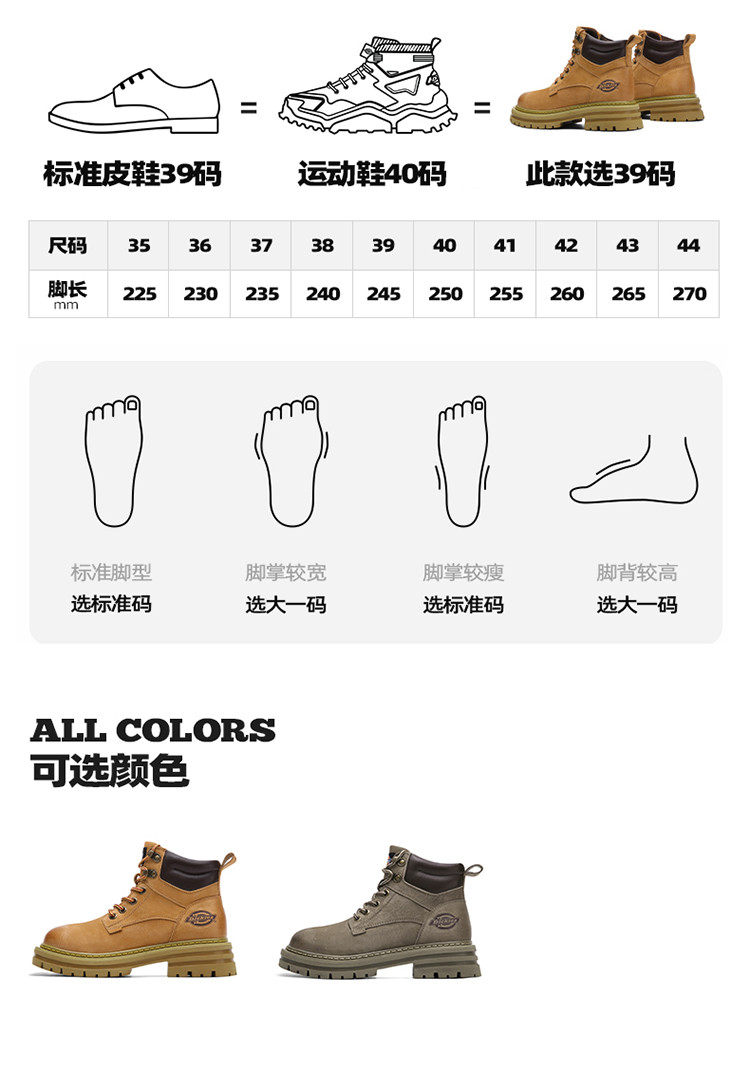 商品名称:工装靴男春秋季大黄靴男短筒靴增高马丁靴休闲百搭男靴子 019486