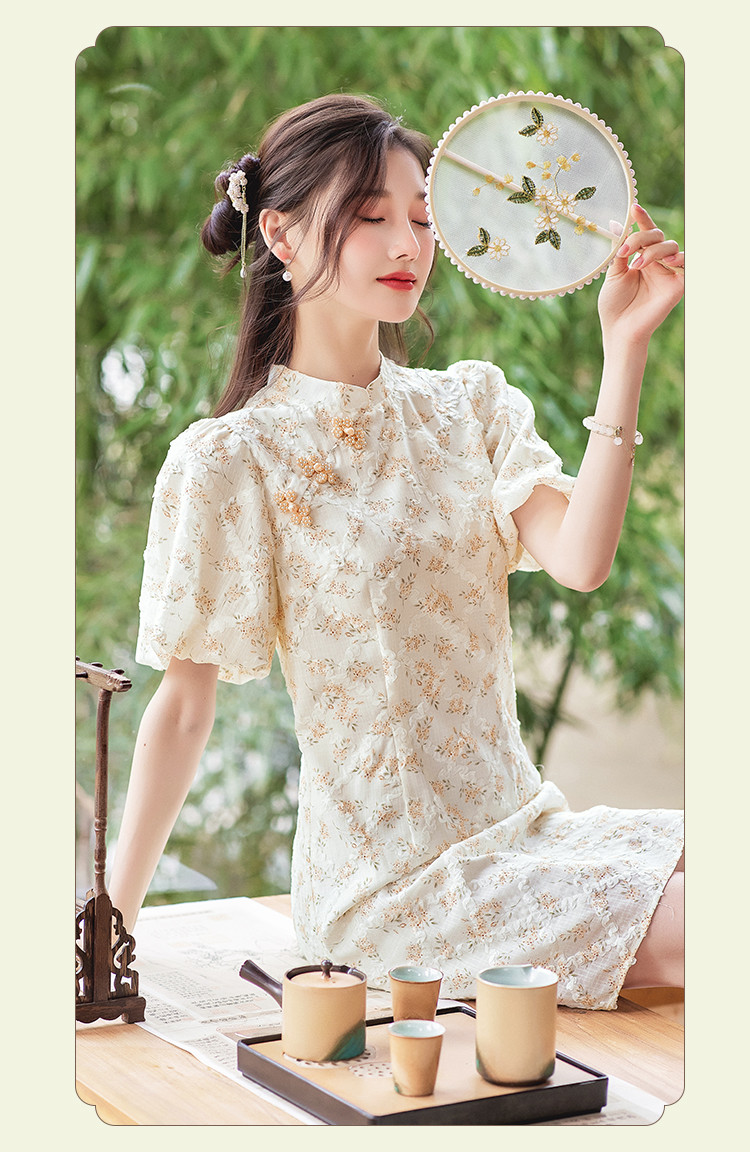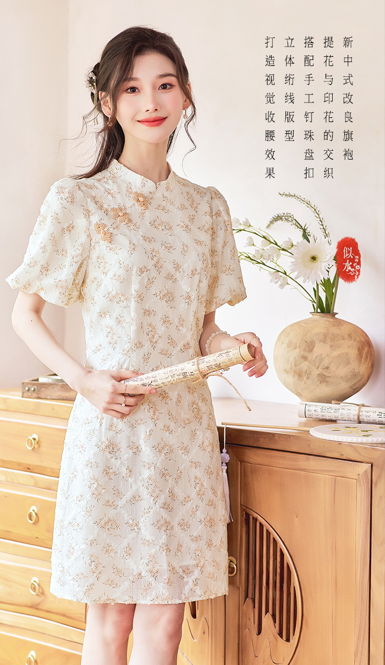 商品名称:【繁花似锦】夏高级感改良旗袍立体剪花设计感显瘦小个子连衣裙 343000