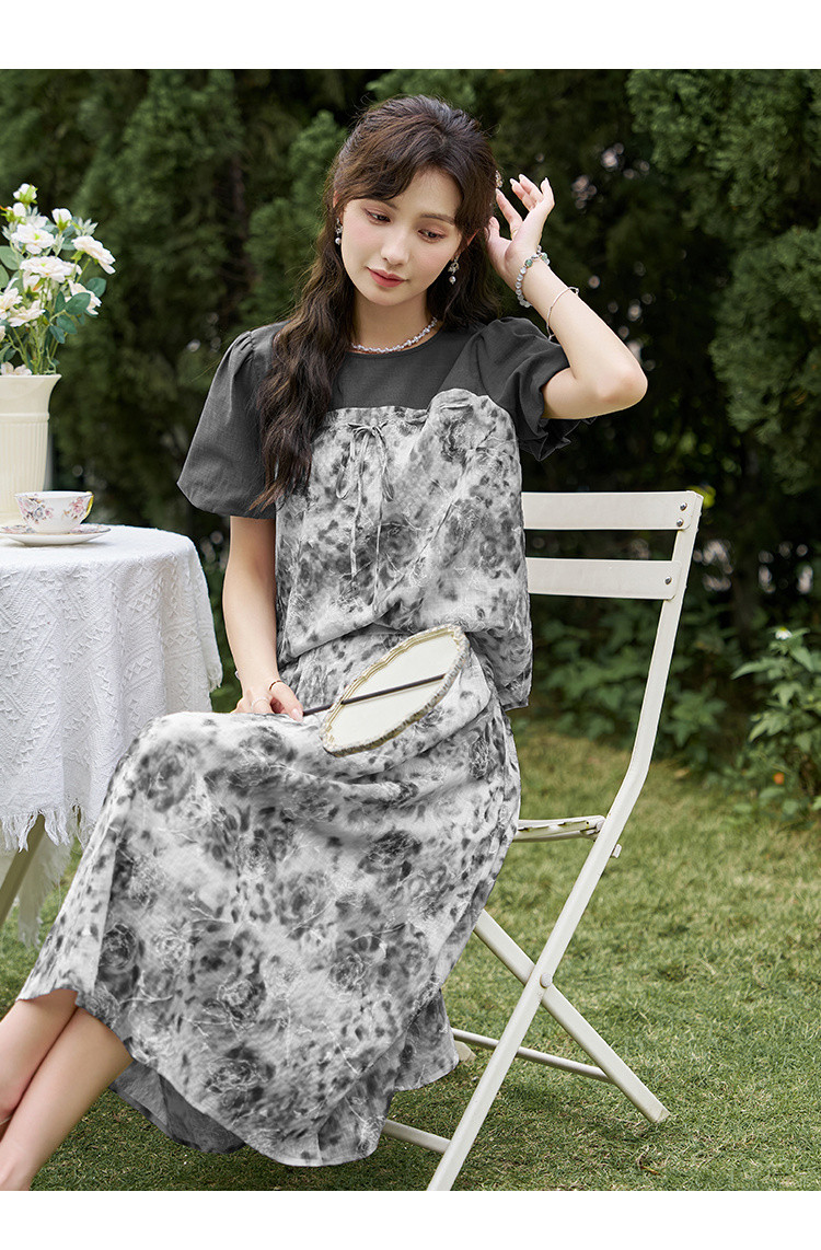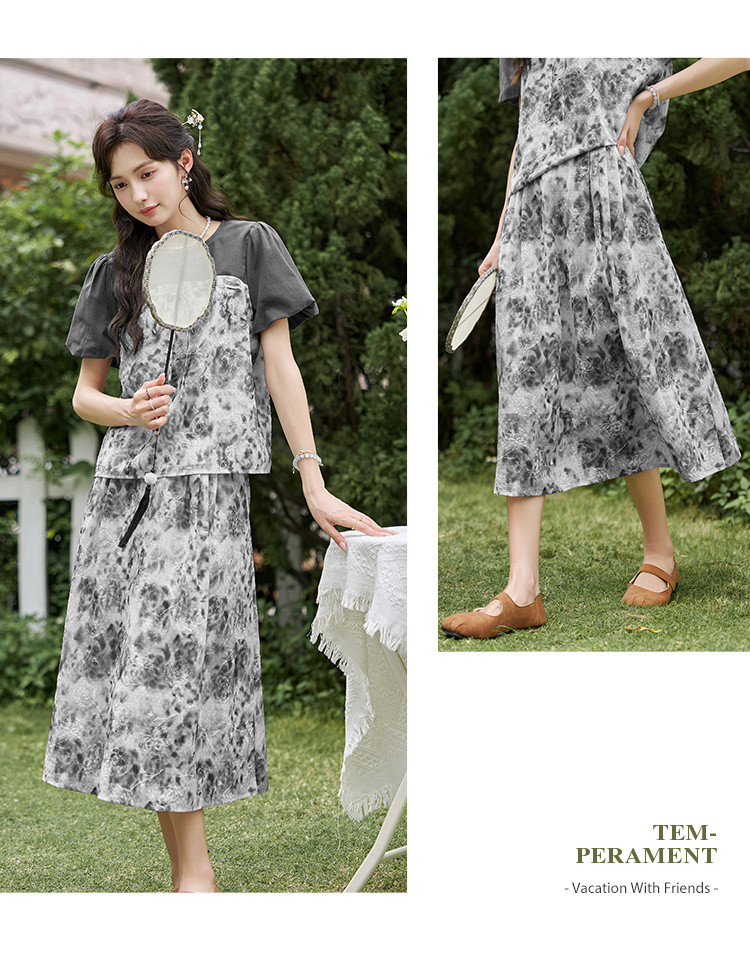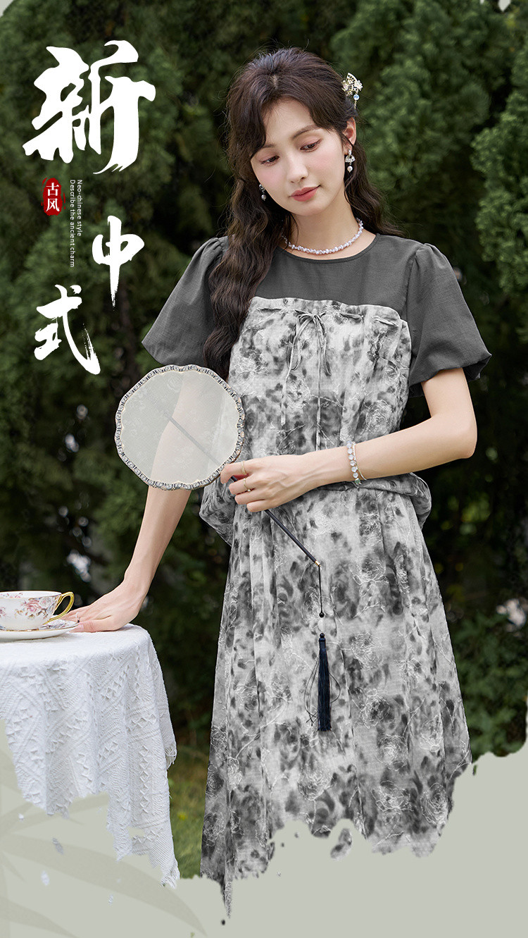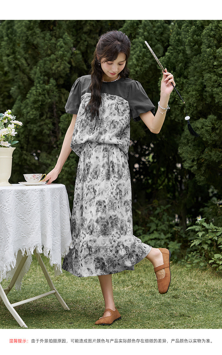 商品名称:【新中式古风套装】夏季水墨印花优雅气质时尚国风女士套装 045185