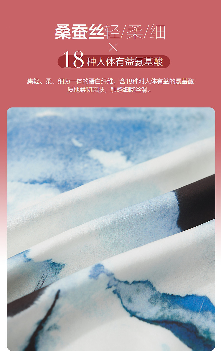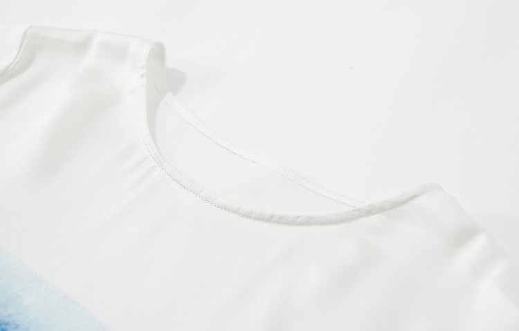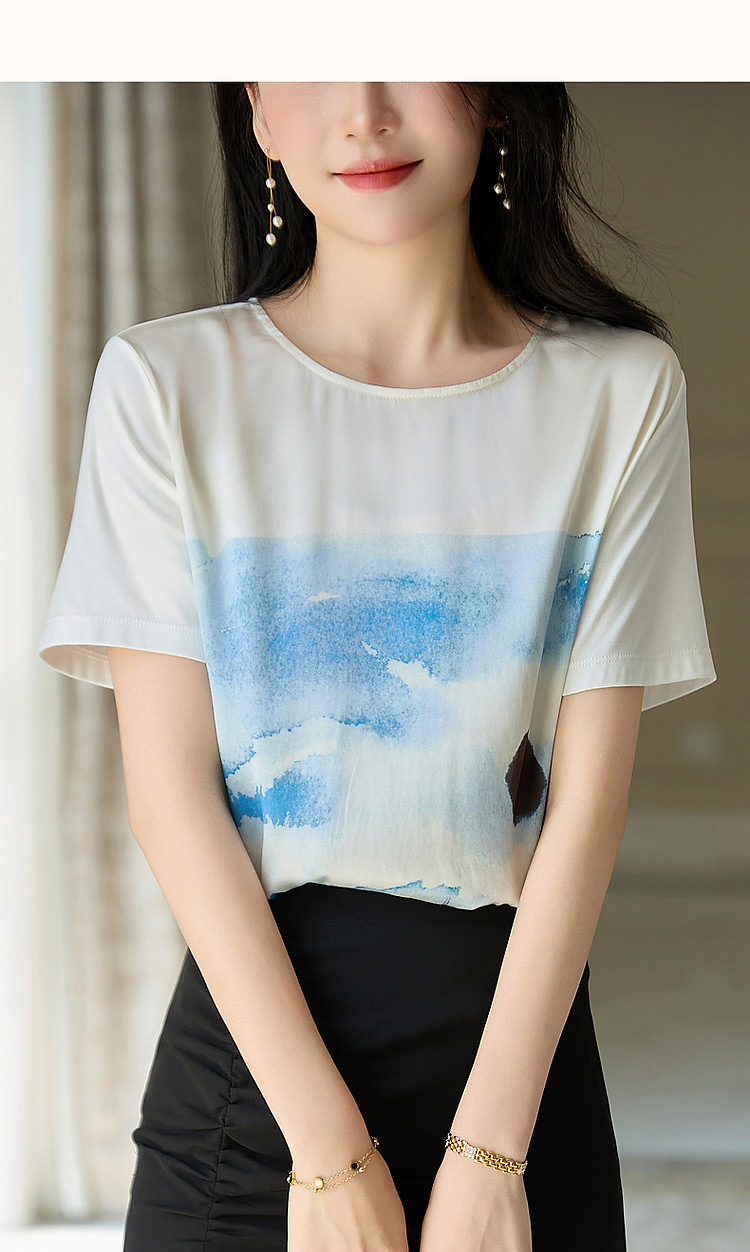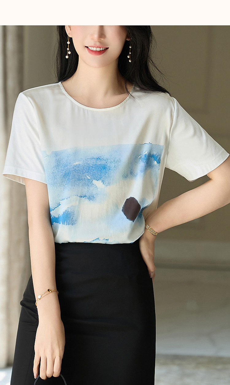 商品名称:【SPA级舒适】夏季桑蚕丝云氧棉山水印花短袖小个子女式t恤 925121