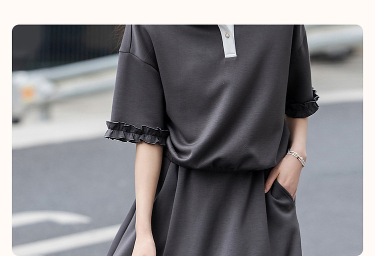 【空气层套装】免搭娃娃领木耳边装饰短上衣撞色短裤卫衣两件套 438529