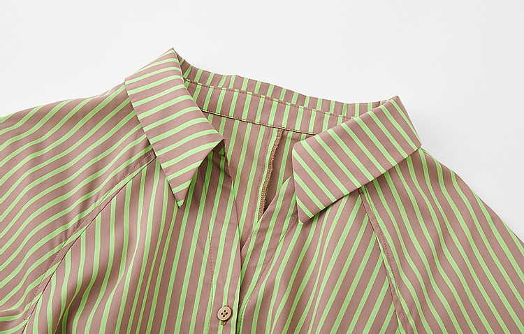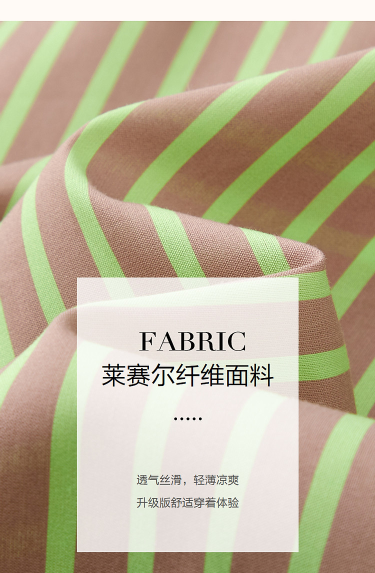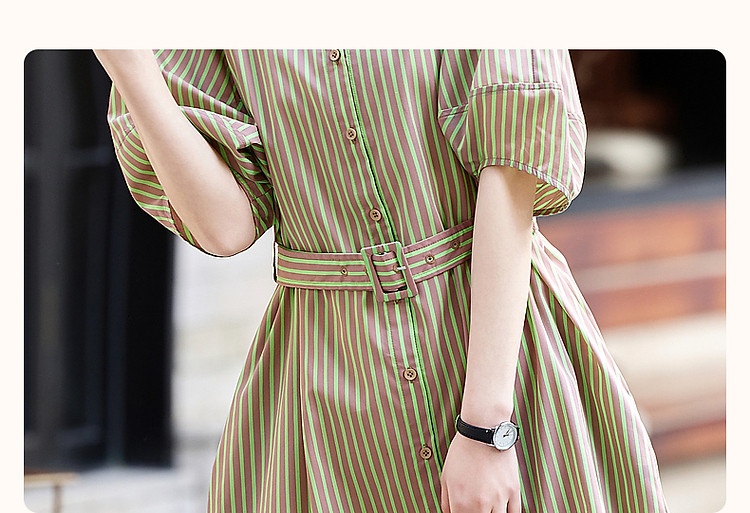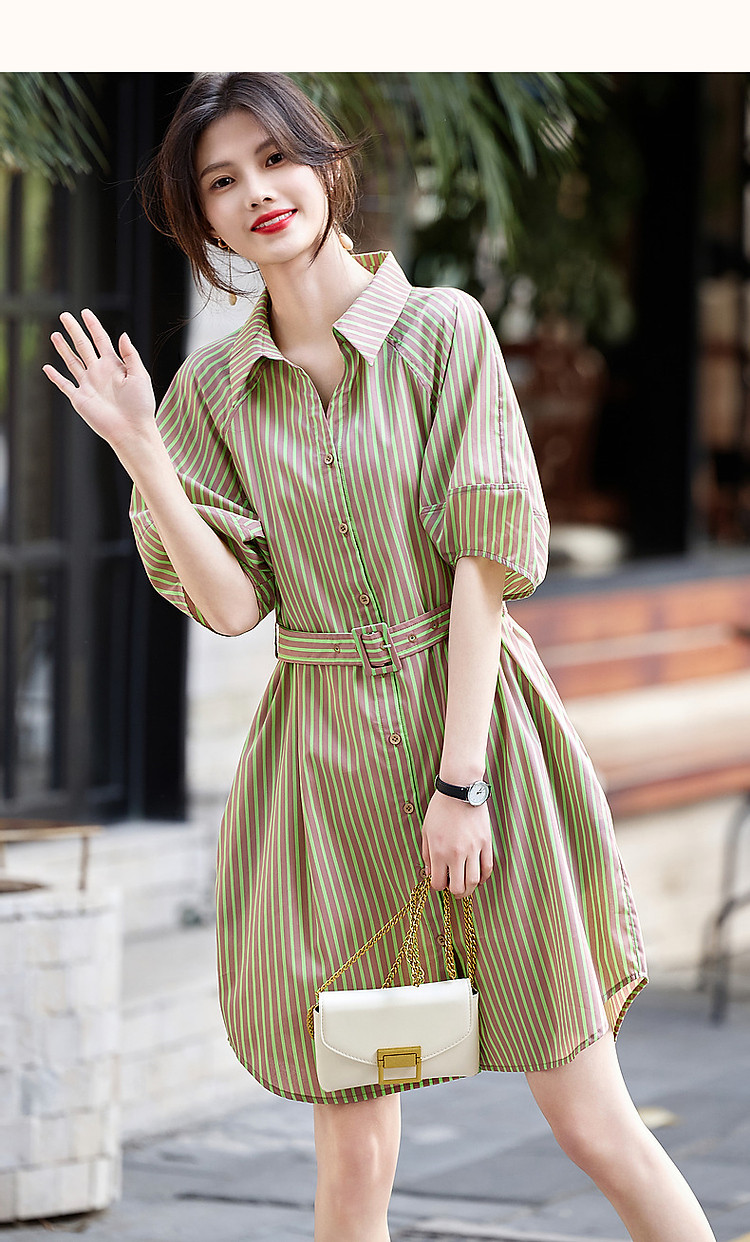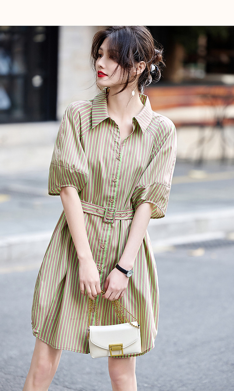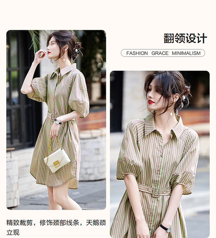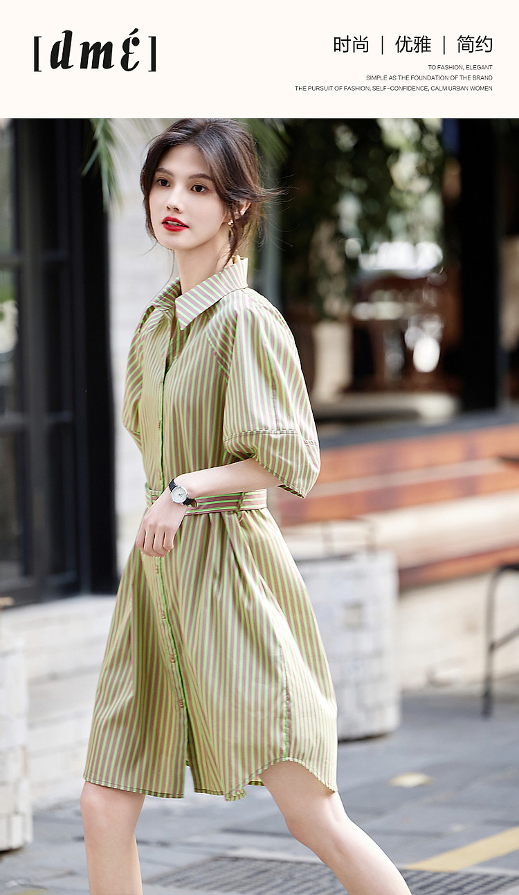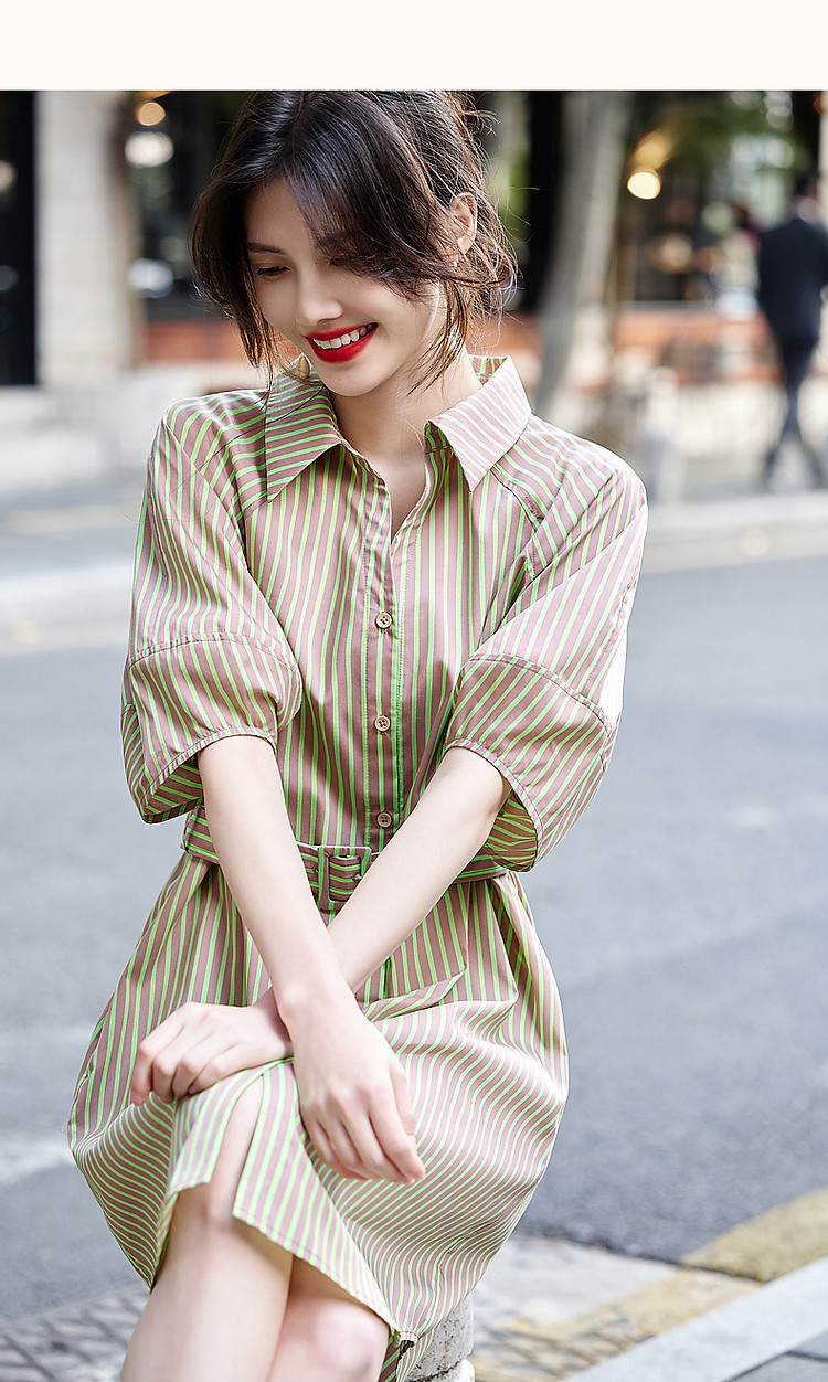 商品名称:【轻氧感莱赛尔】夏季法式通勤撞色条纹腰带衬衫式气质女式连衣裙 744193