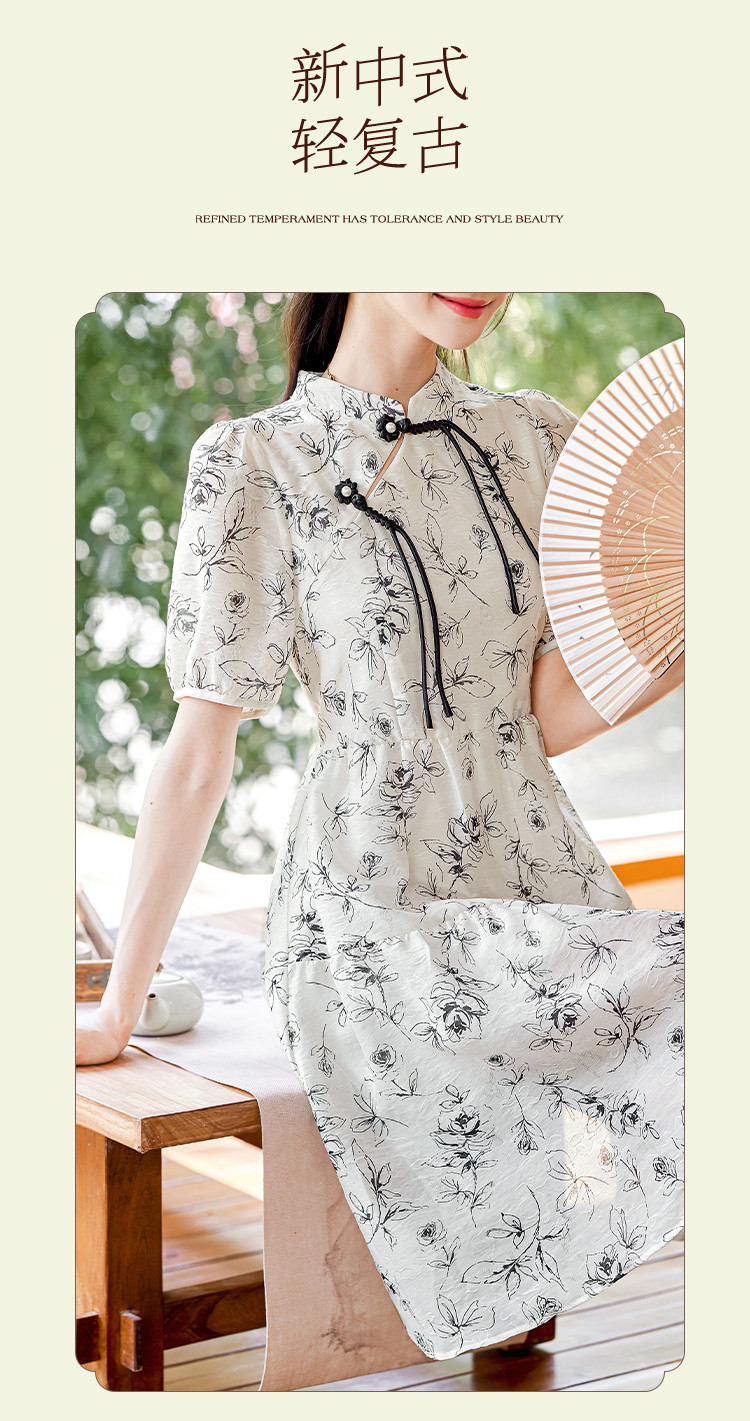 商品名称:【墨色瑰钰】夏高级感改良旗袍花形流苏扣设计显瘦小个子连衣裙 992984
