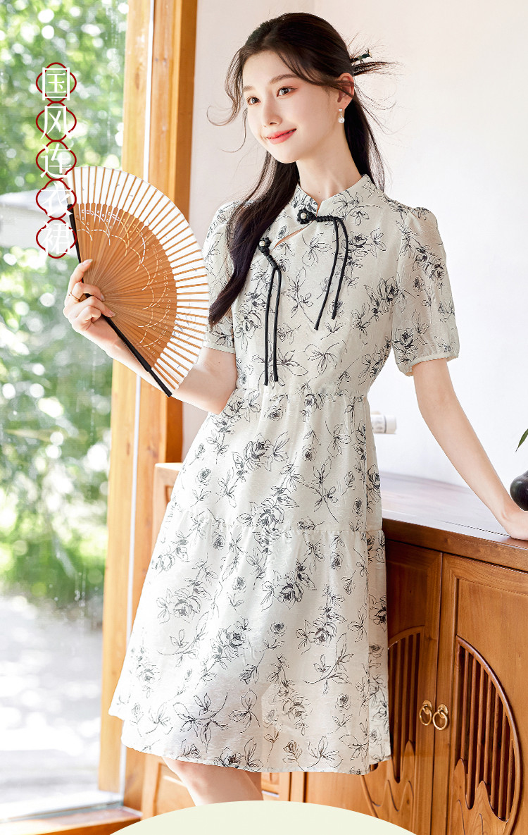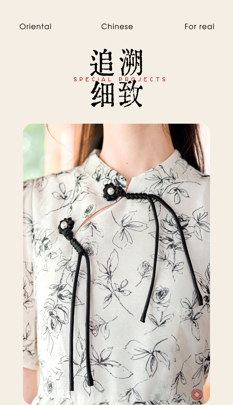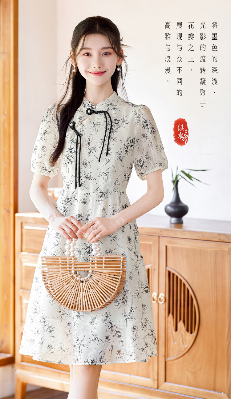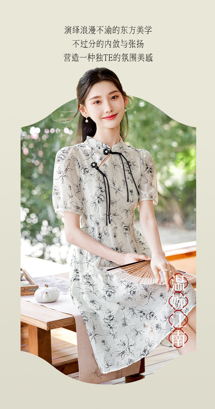 【墨色瑰钰】夏高级感改良旗袍花形流苏扣设计显瘦小个子连衣裙 992984