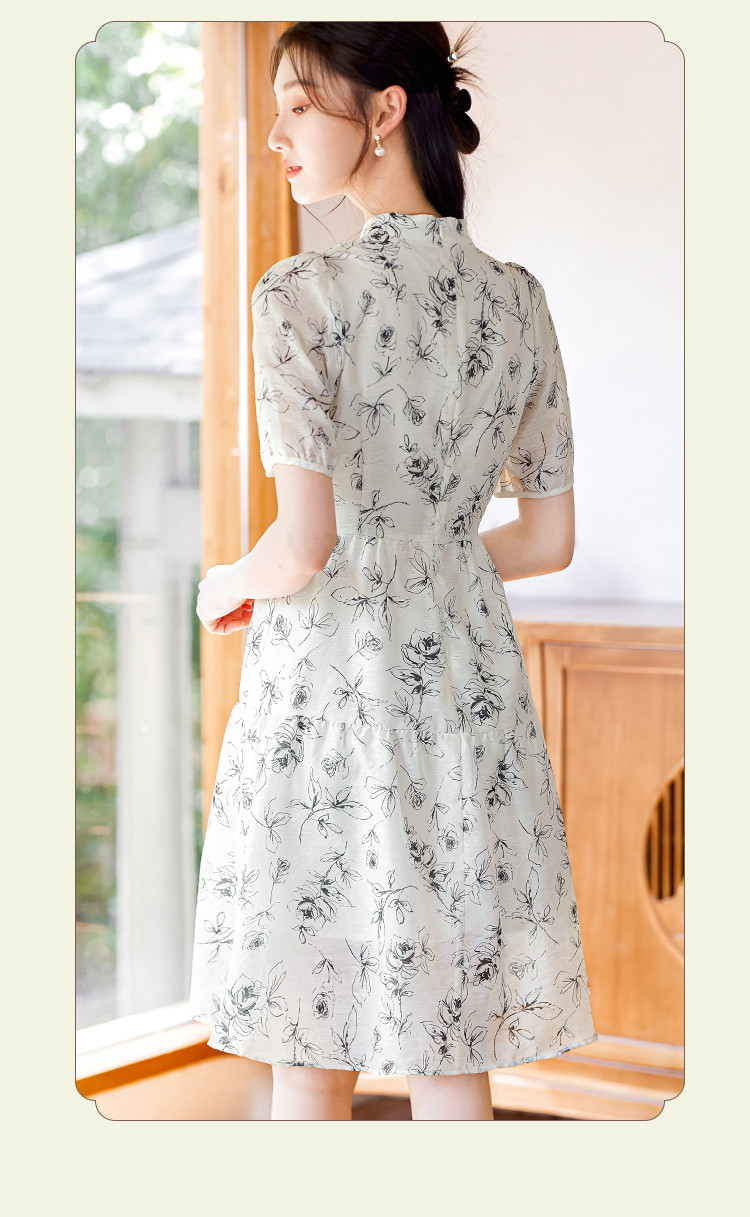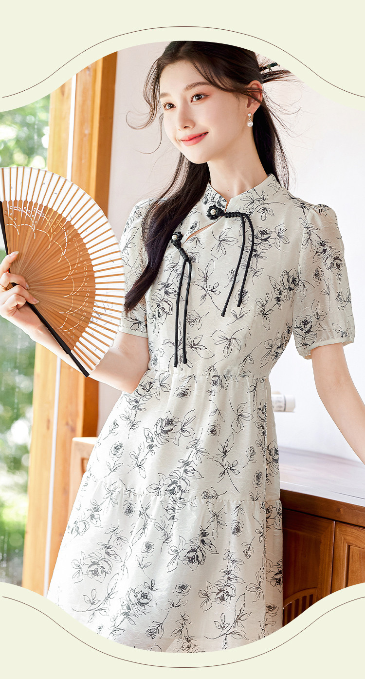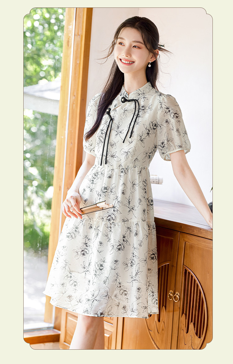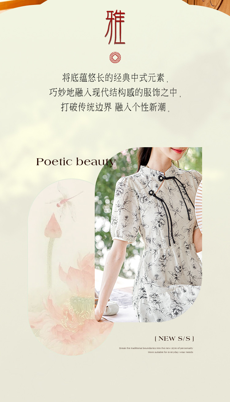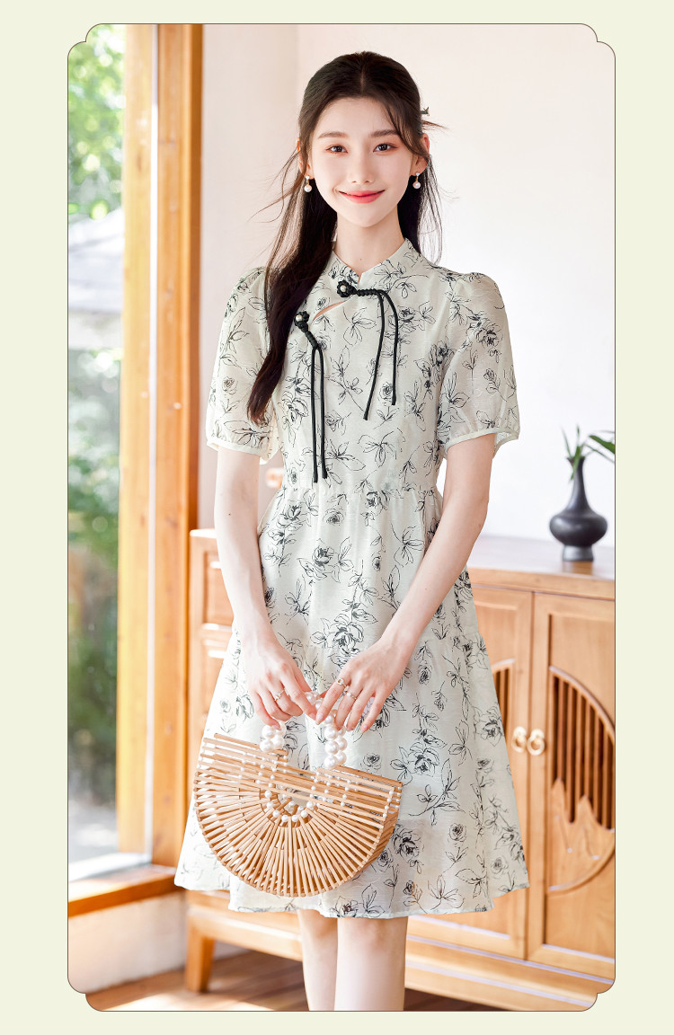 【墨色瑰钰】夏高级感改良旗袍花形流苏扣设计显瘦小个子连衣裙 992984