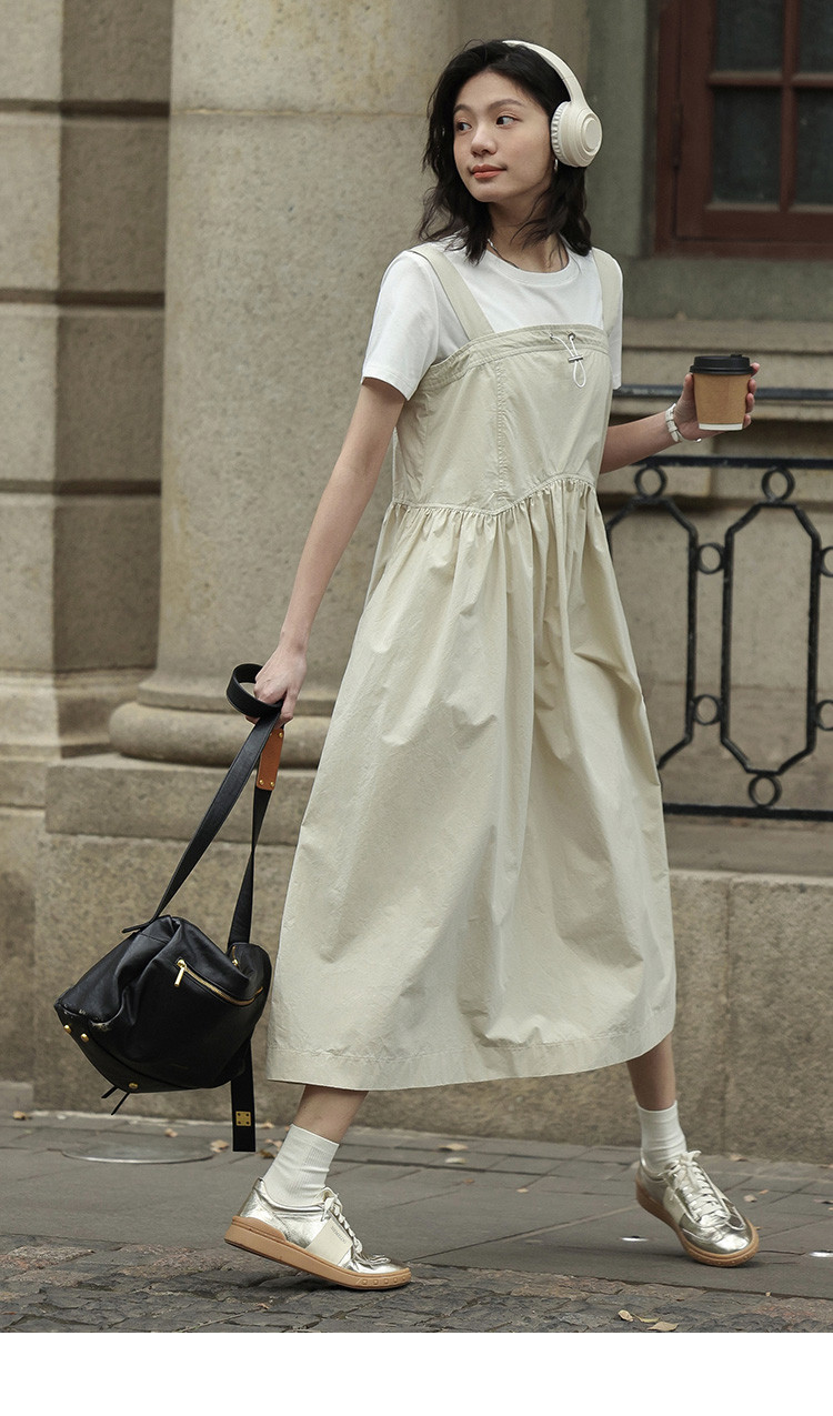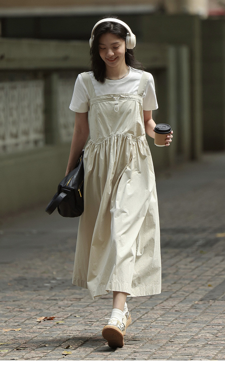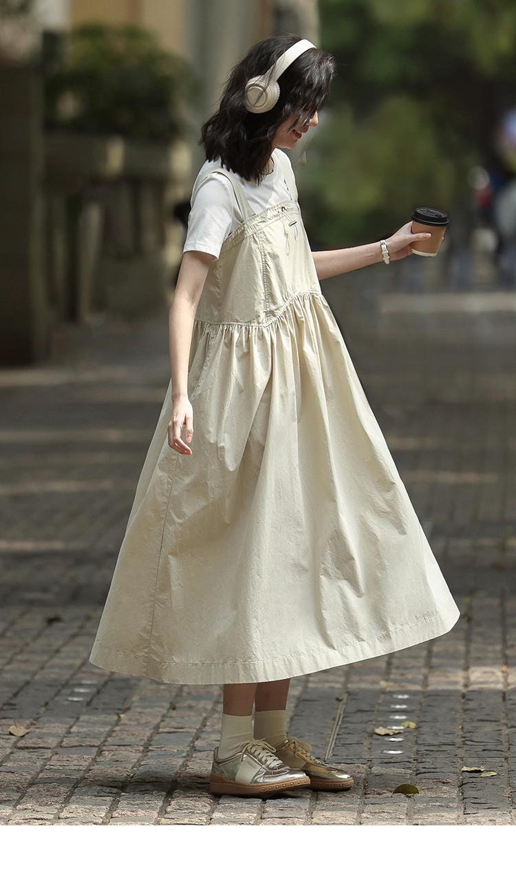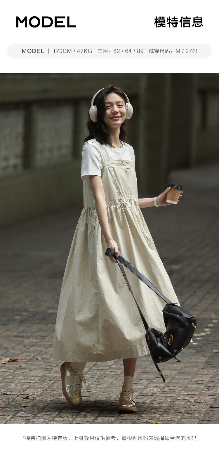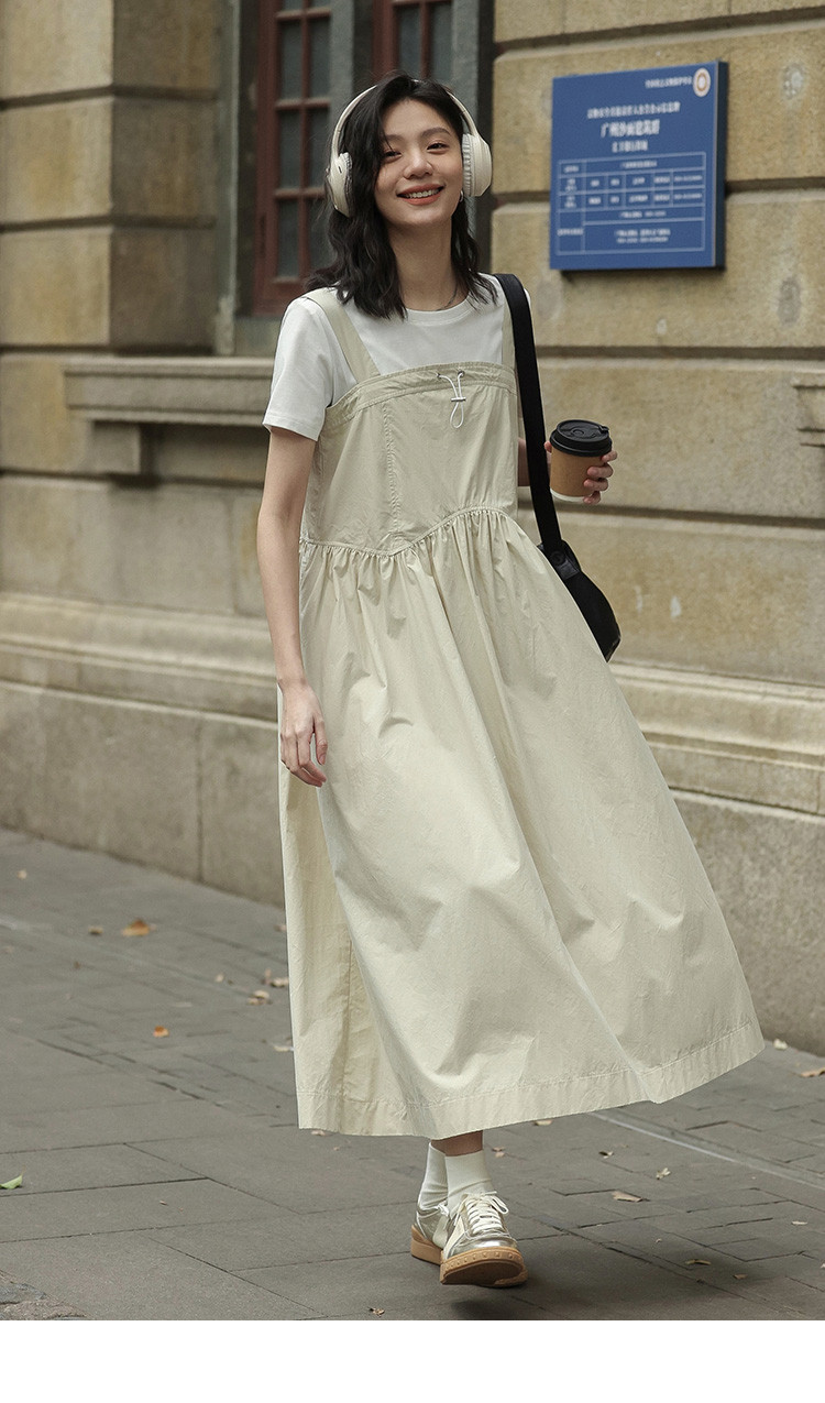 【简约工装风背带裙】前胸扣抽绳下摆背带长款背带裙女 583810