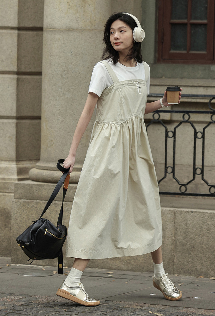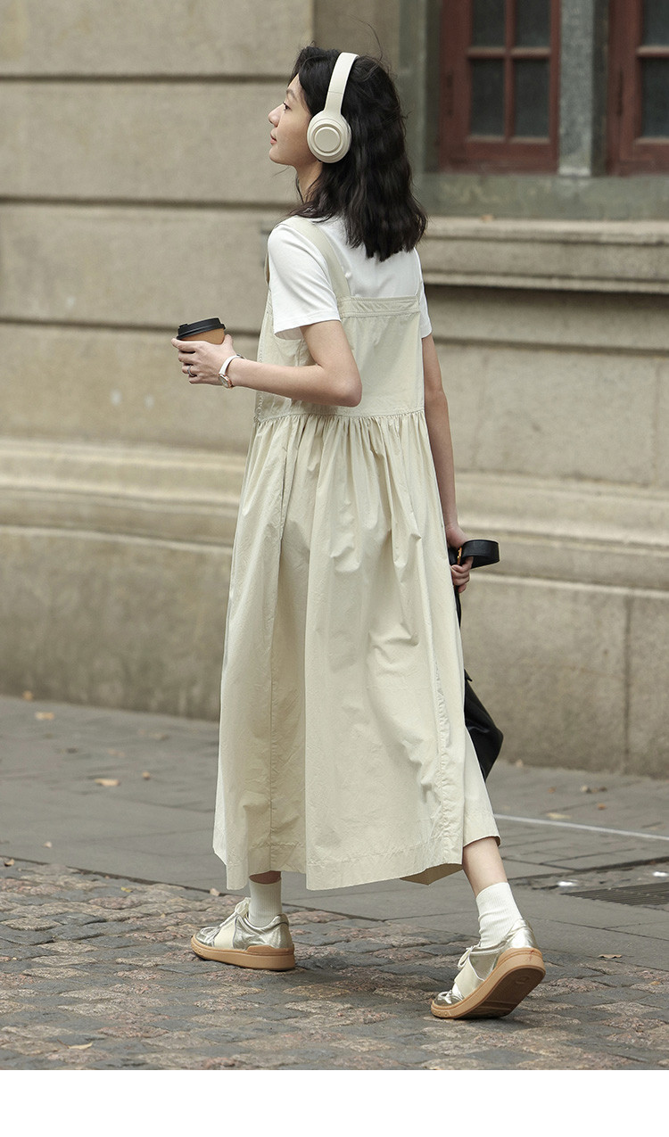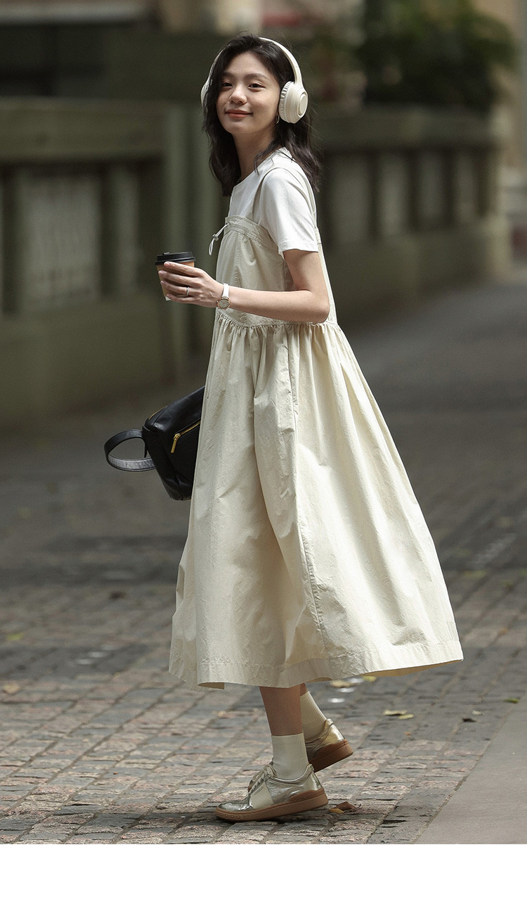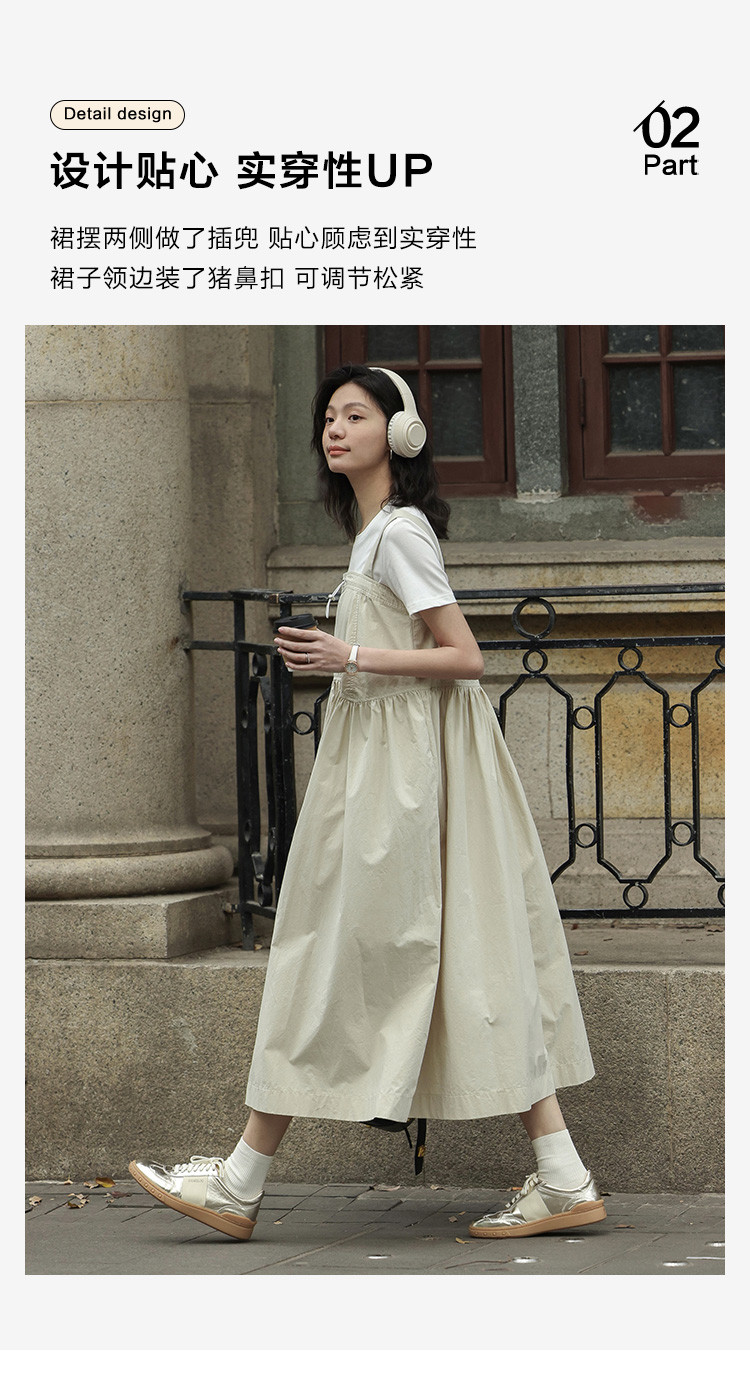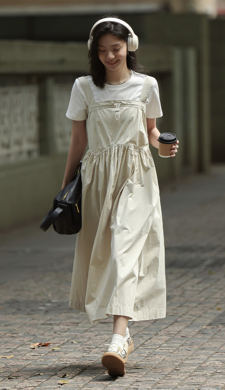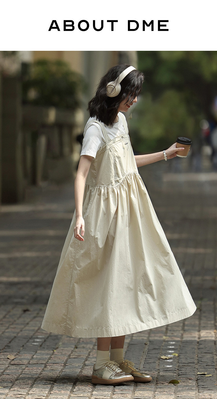 【简约工装风背带裙】前胸扣抽绳下摆背带长款背带裙女 583810