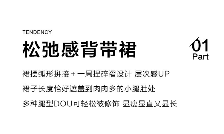 商品名称:【简约工装风背带裙】前胸扣抽绳下摆背带长款背带裙女 583810