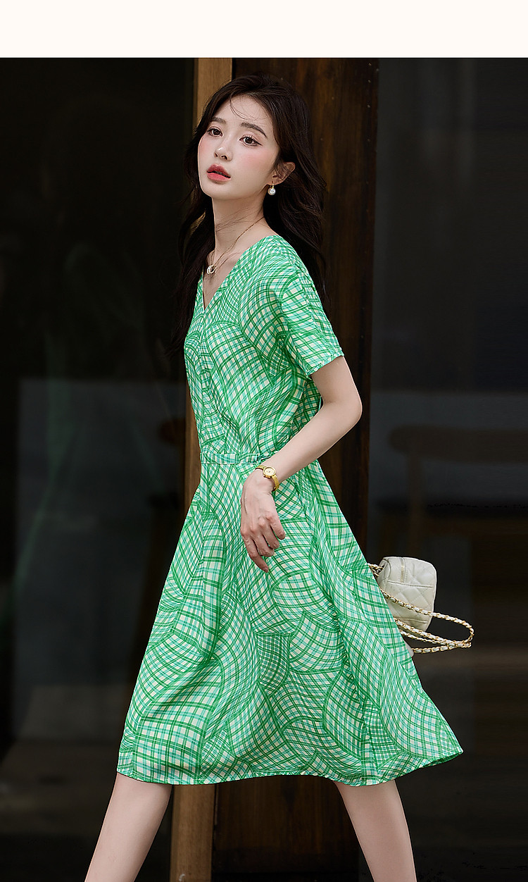【薄荷曼波仙女裙】夏奢享桑蚕丝印花氧气感连衣裙女 956353