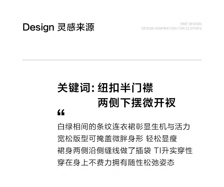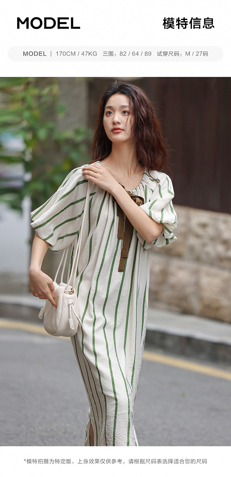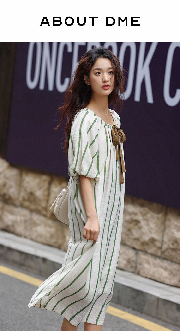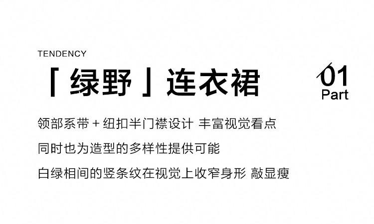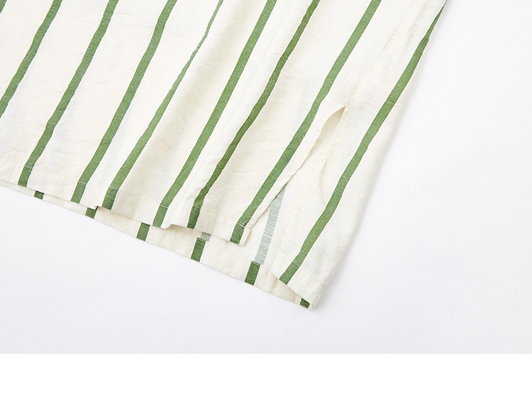 商品名称:【简约绿条纹连衣裙】可调节领子下摆侧缝开叉中长款连衣裙 625794