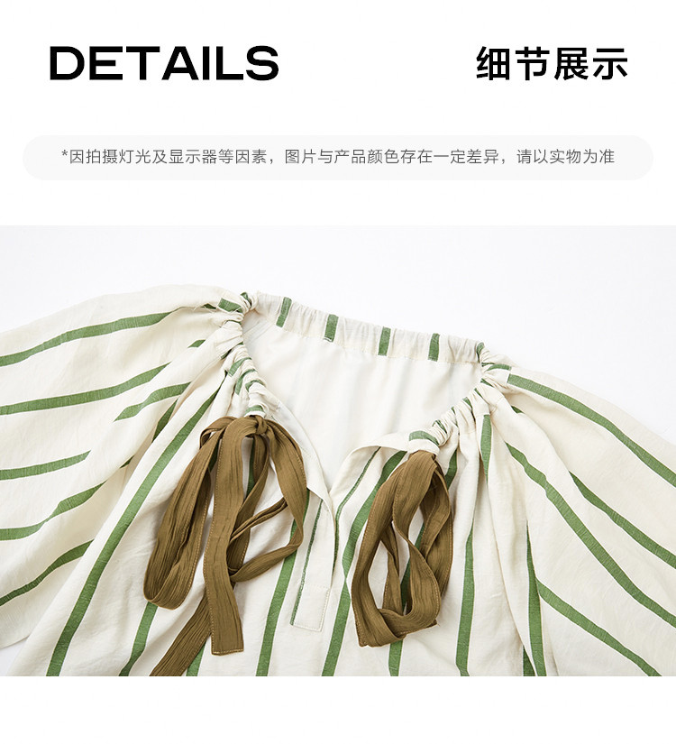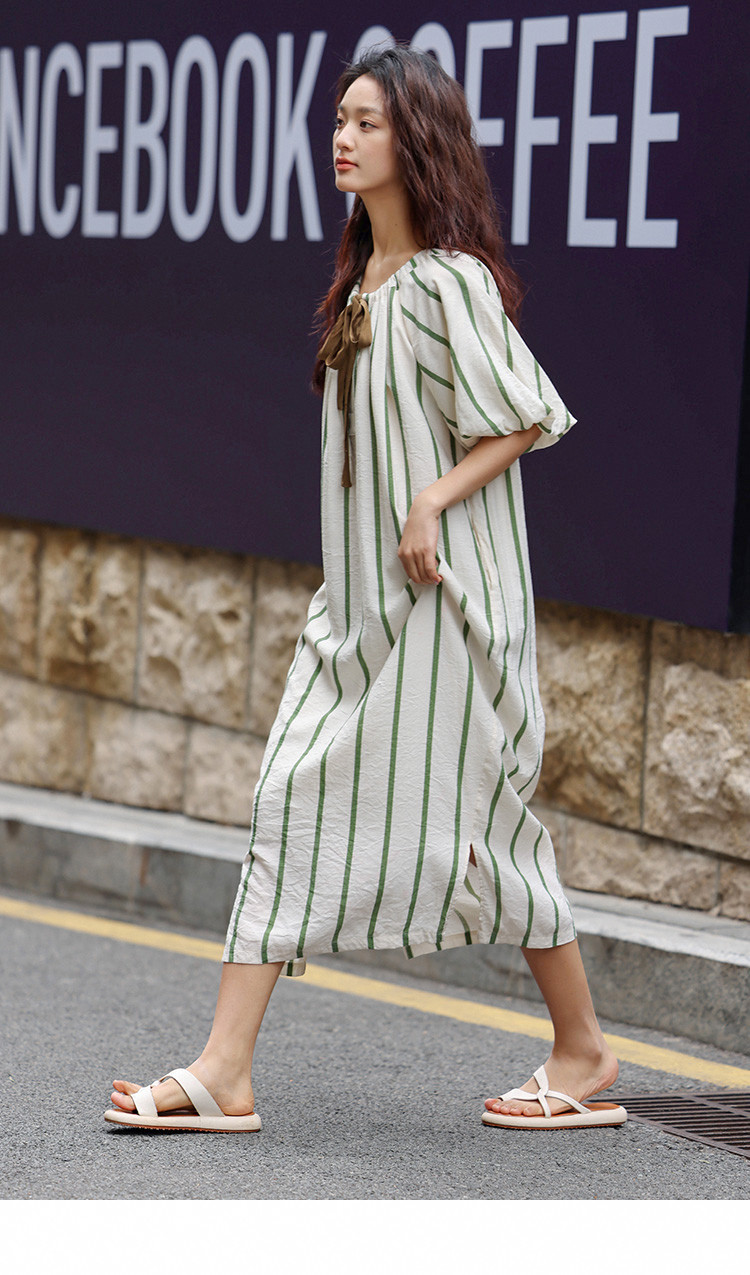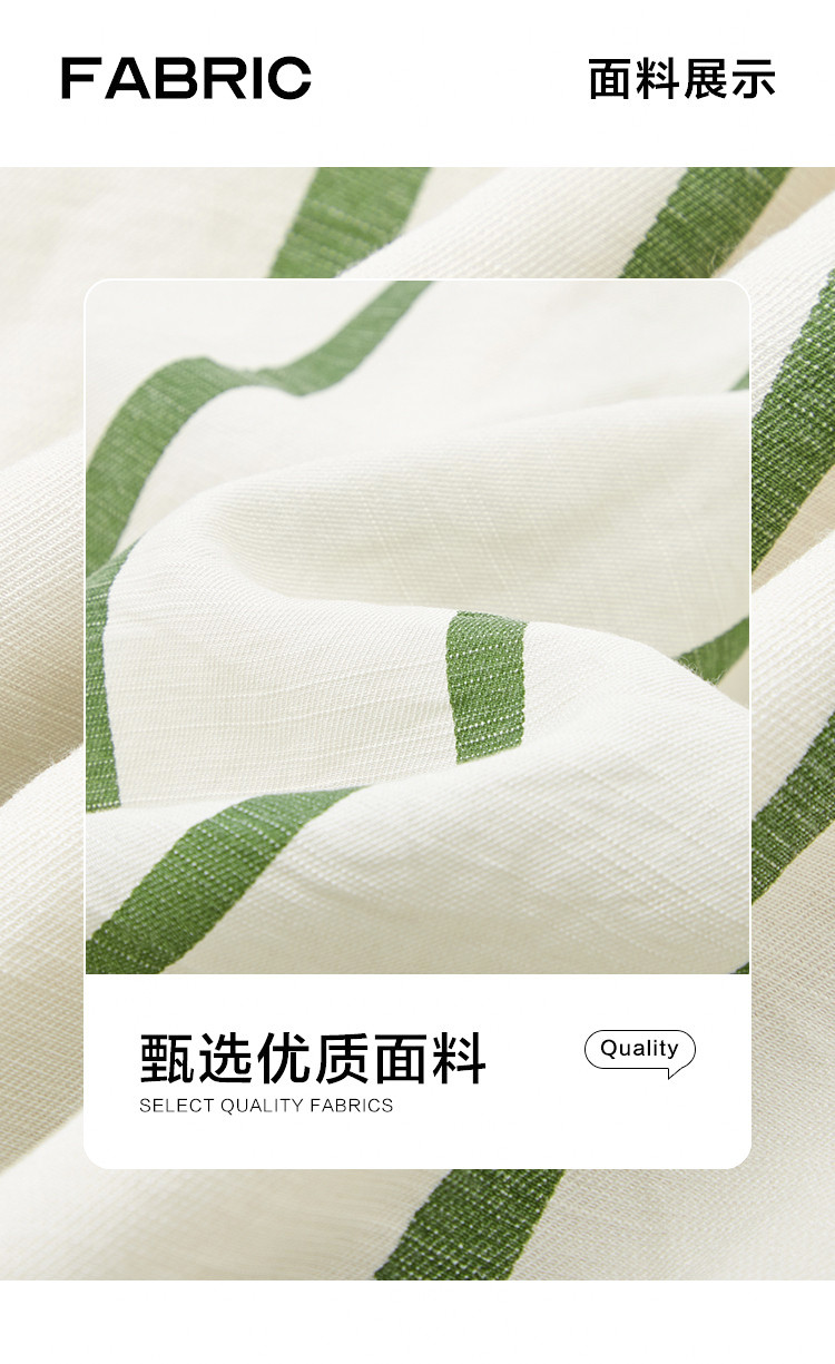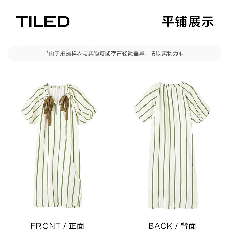 商品名称:【简约绿条纹连衣裙】可调节领子下摆侧缝开叉中长款连衣裙 625794