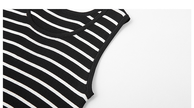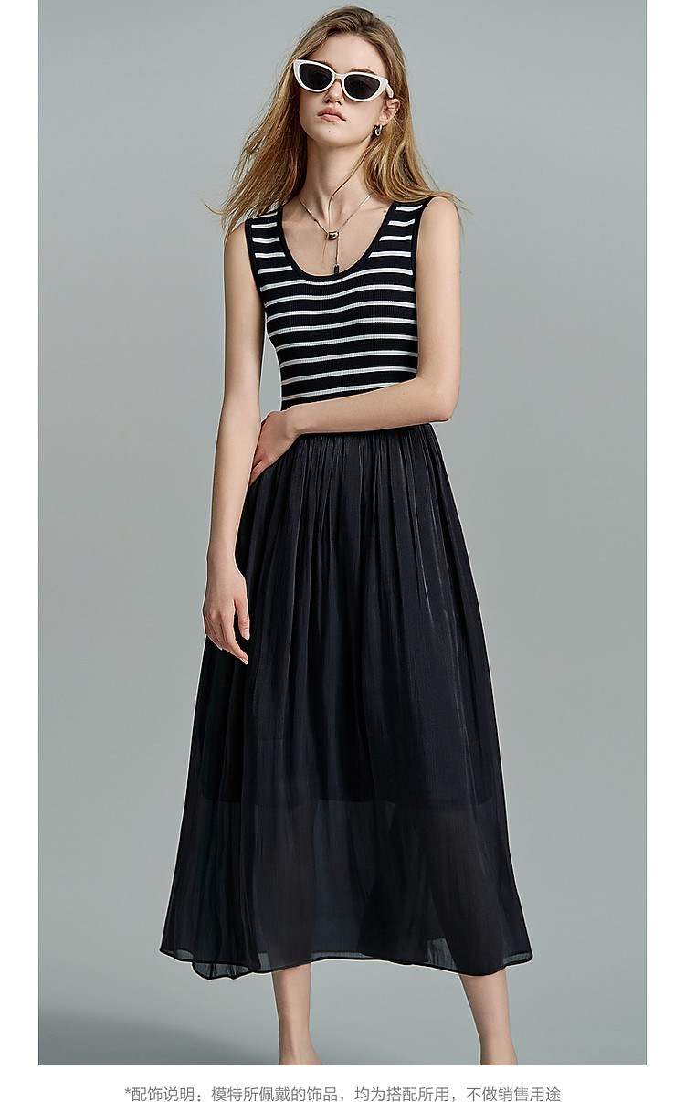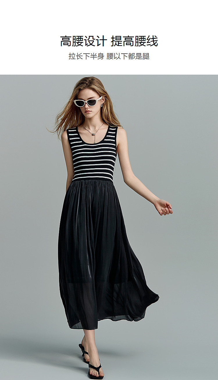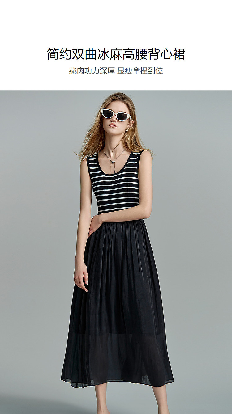 商品名称:【美式复古】夏季甄选双曲冰麻背心裙无袖高腰条纹A字女式连衣裙 596929