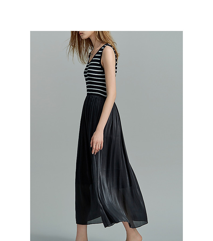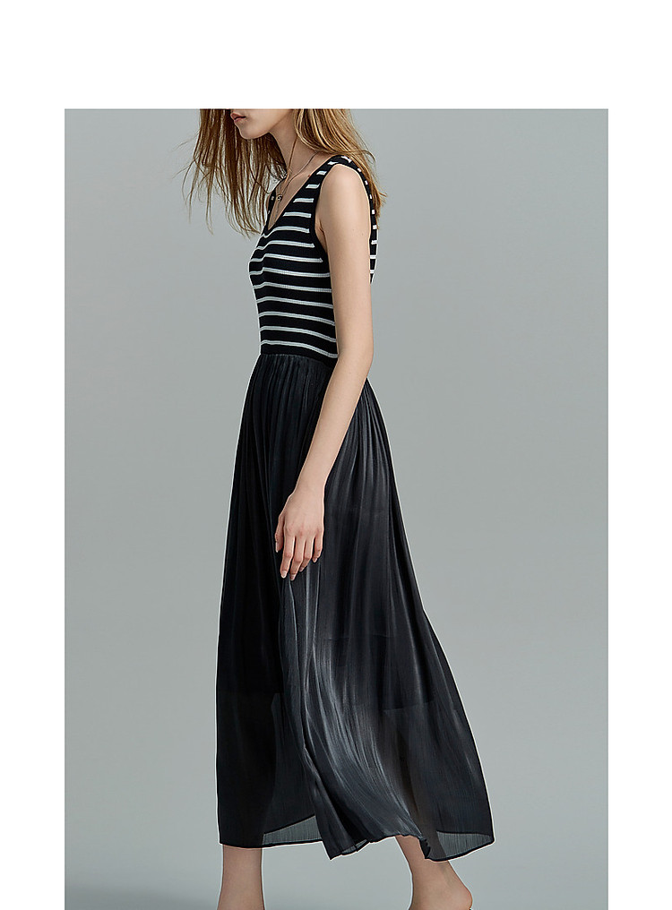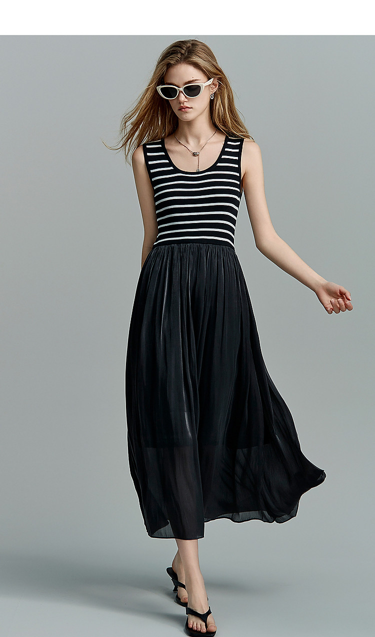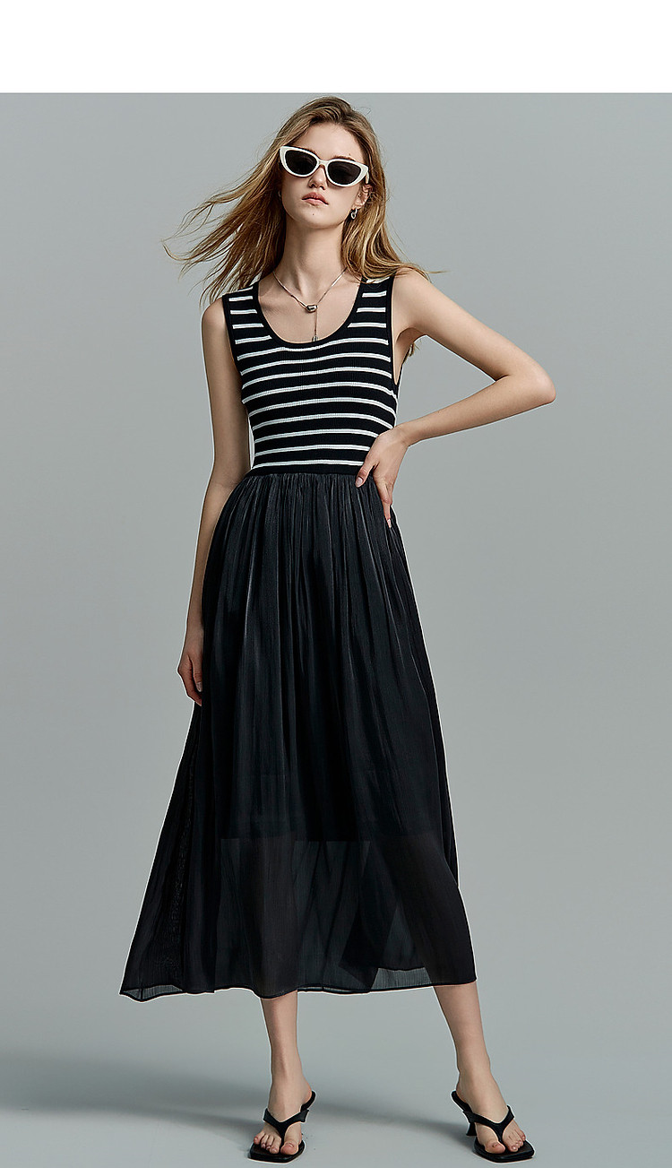 商品名称:【美式复古】夏季甄选双曲冰麻背心裙无袖高腰条纹A字女式连衣裙 596929