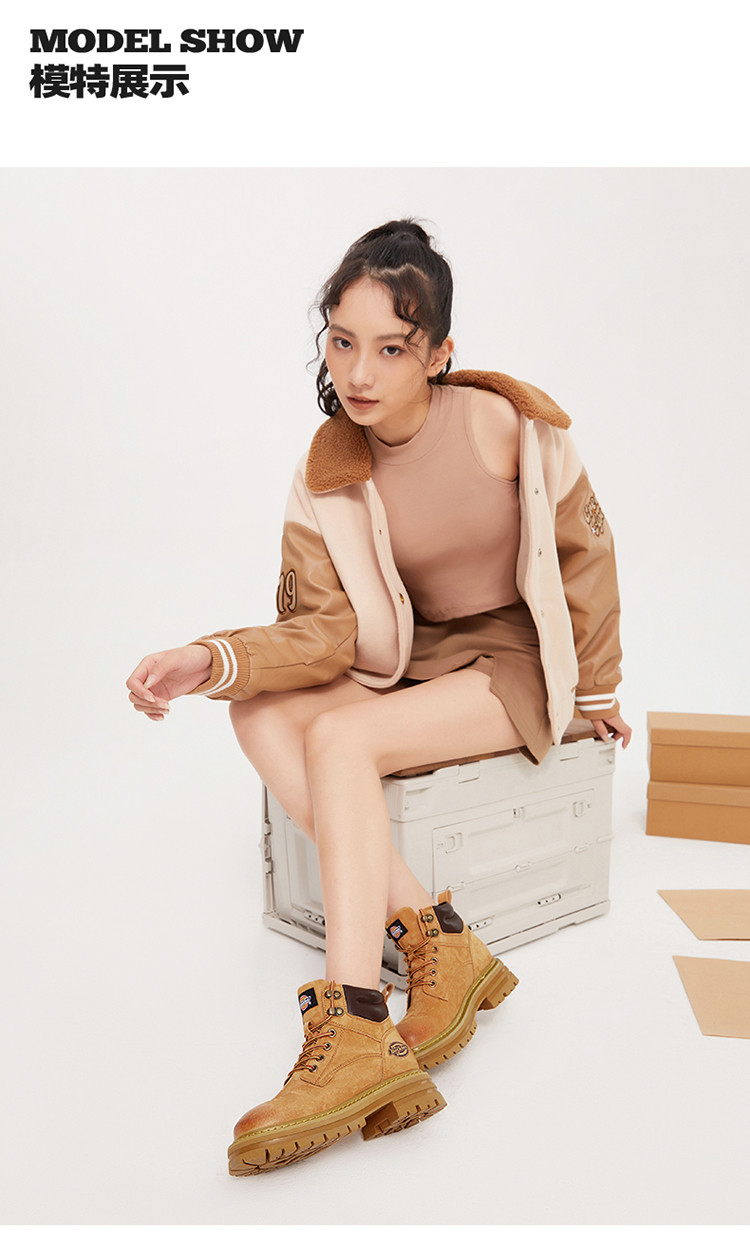 商品名称:工装靴女春秋季复古大黄靴短筒靴厚底马丁靴户外女靴子 971422