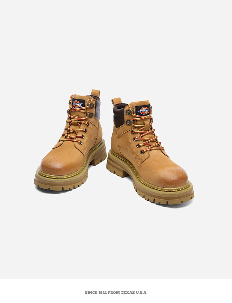 工装靴女春秋季复古大黄靴短筒靴厚底马丁靴户外女靴子 971422
