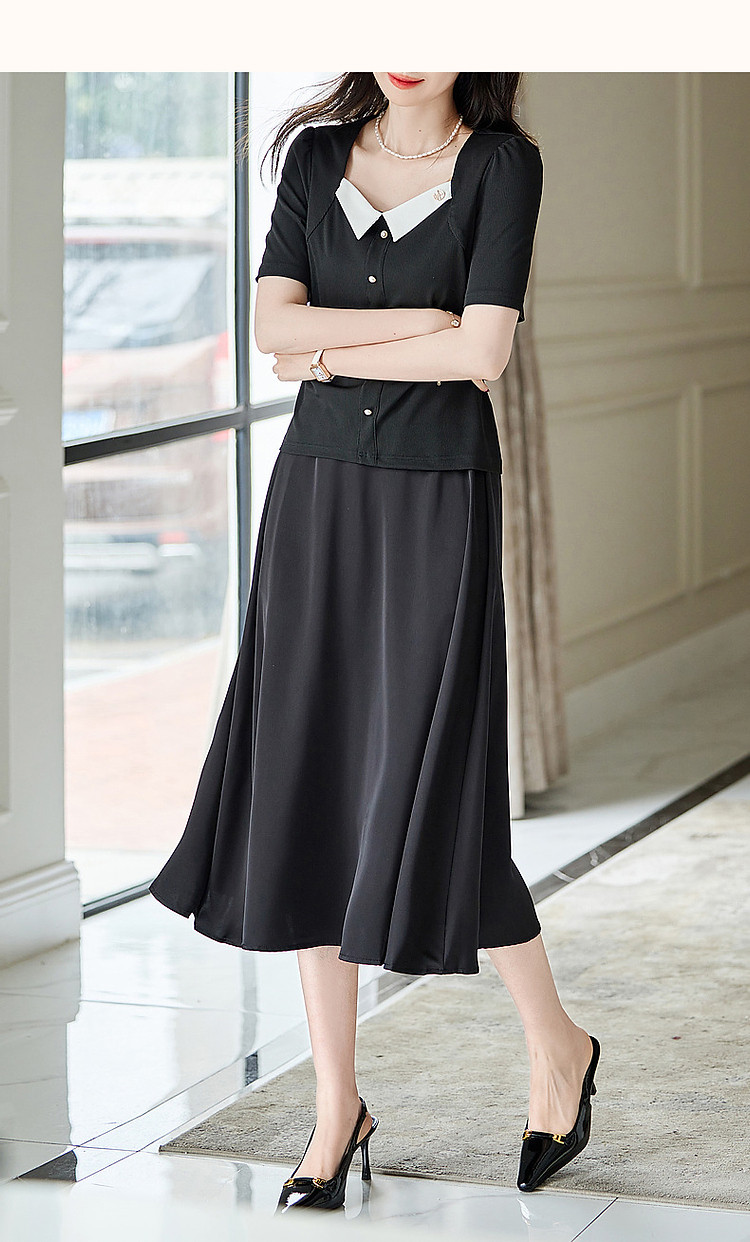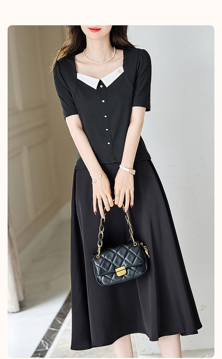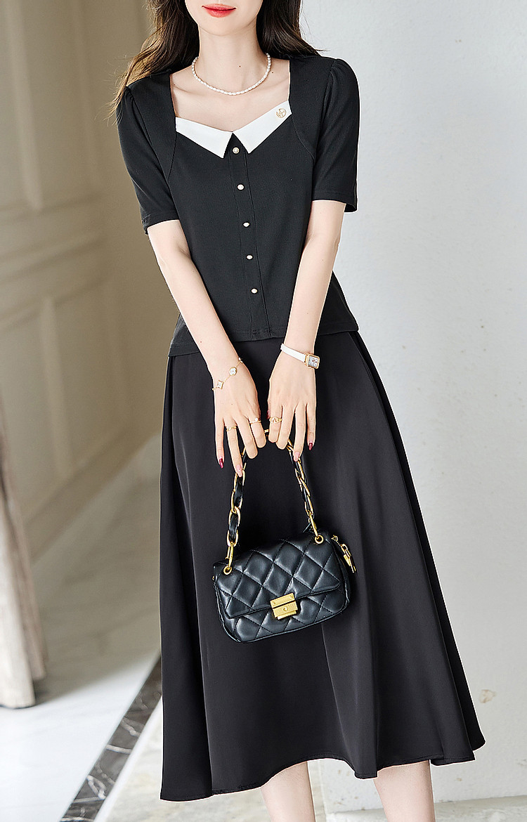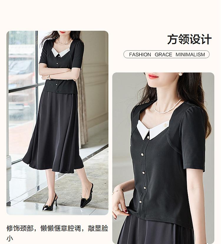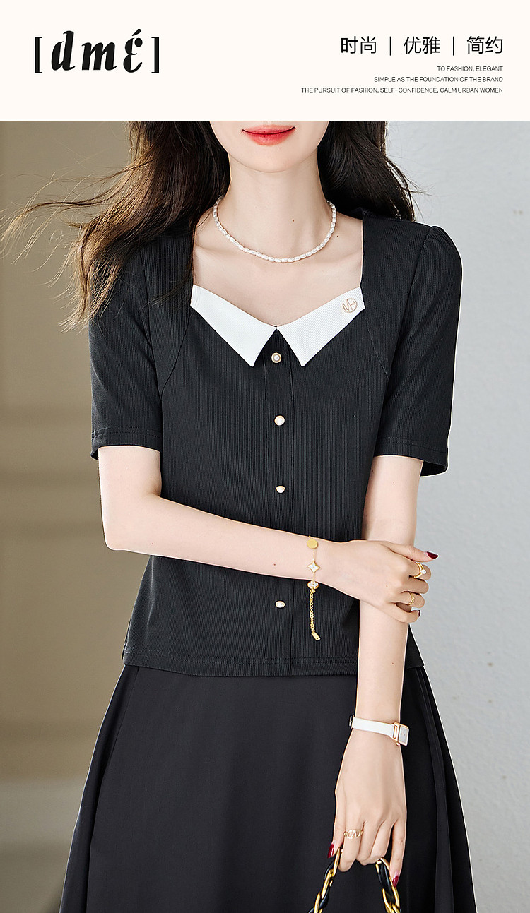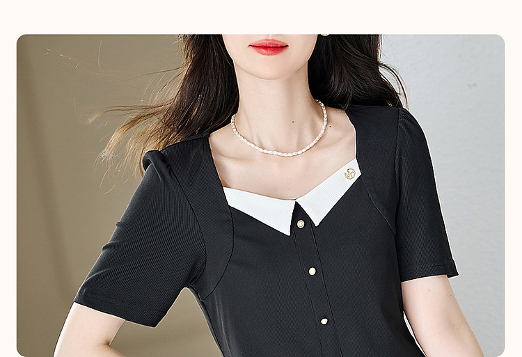商品名称:【奥赛罗公主】夏美式甜心方领短袖t恤女泡泡袖拼色针织女式t恤 454081