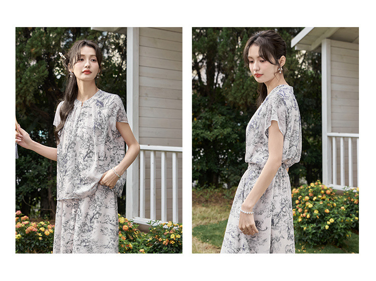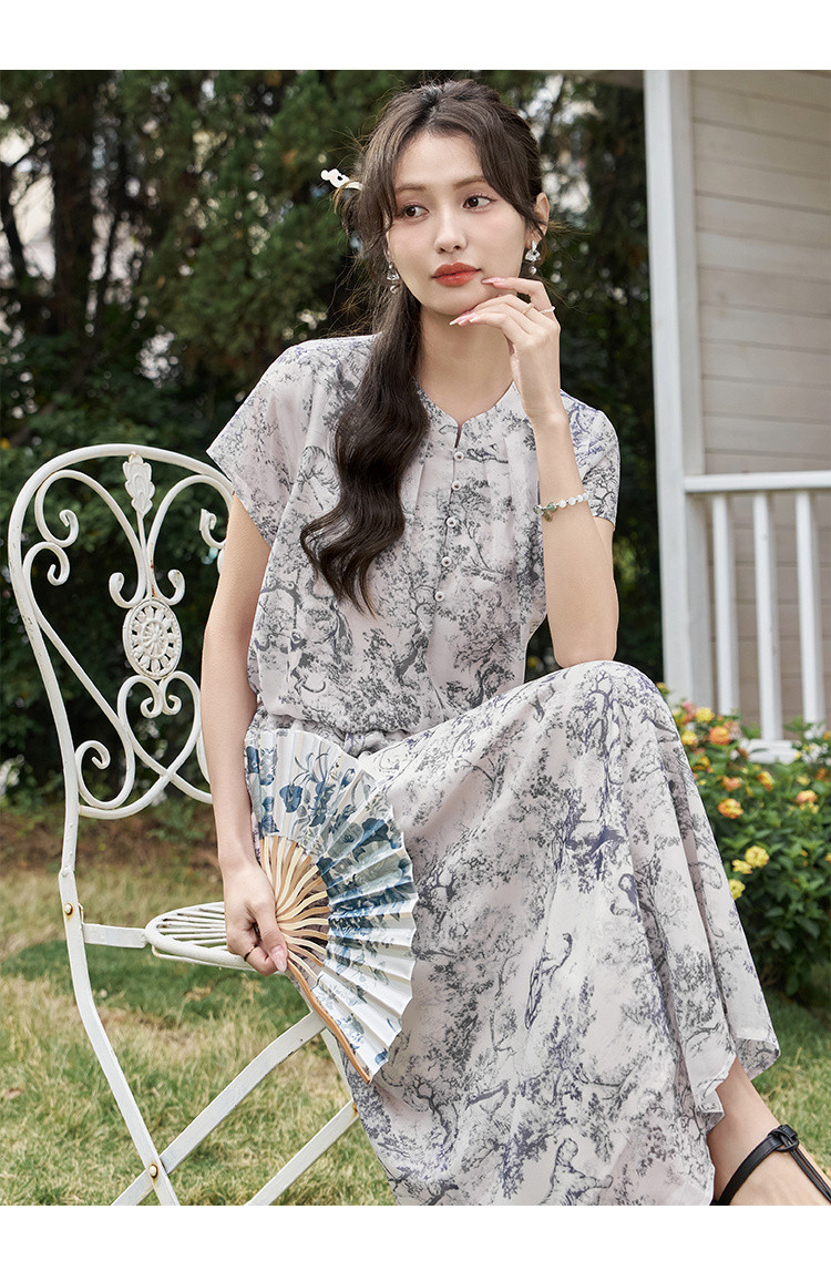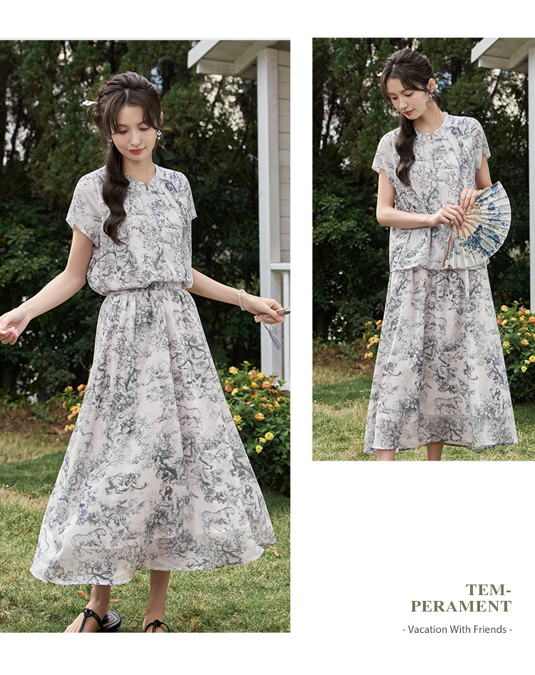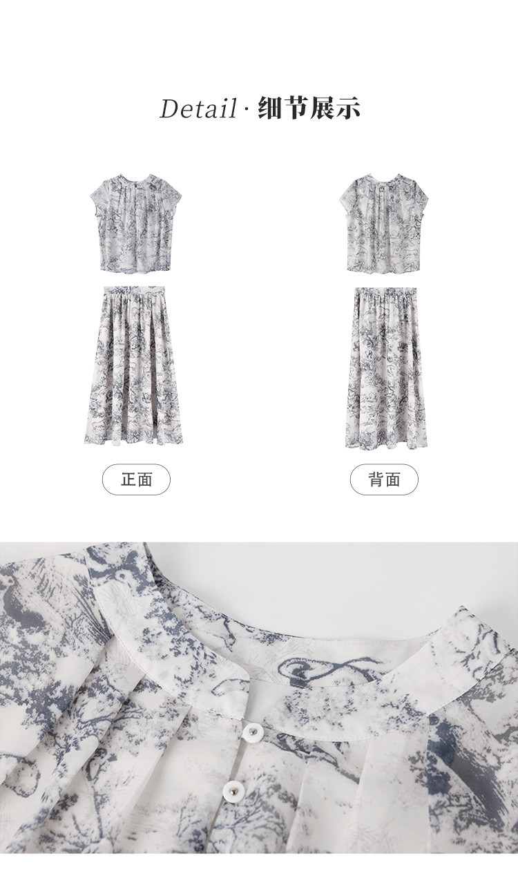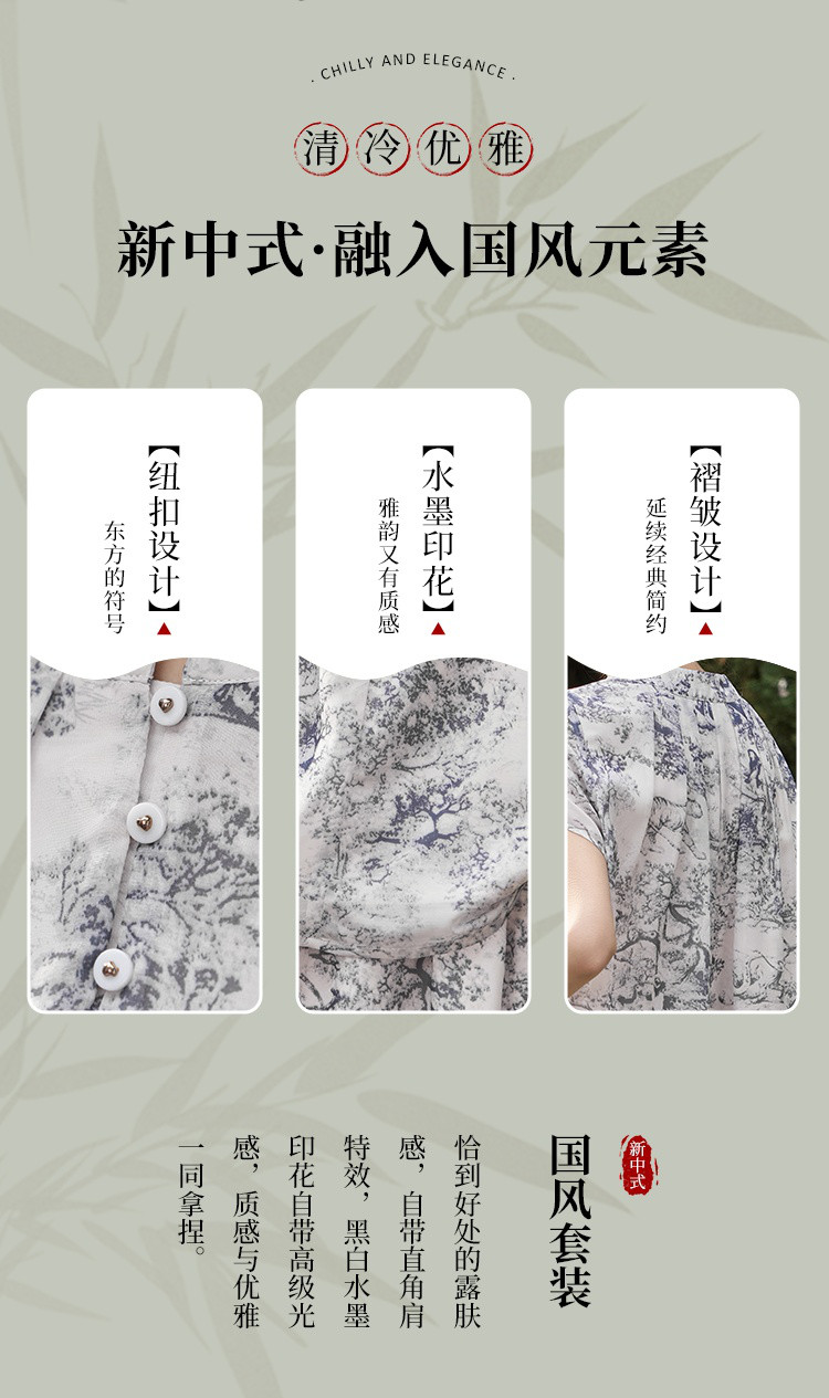 商品名称:【水墨印花国风半裙套装】夏休闲宽松立领高级感时尚新中式两件套 426305